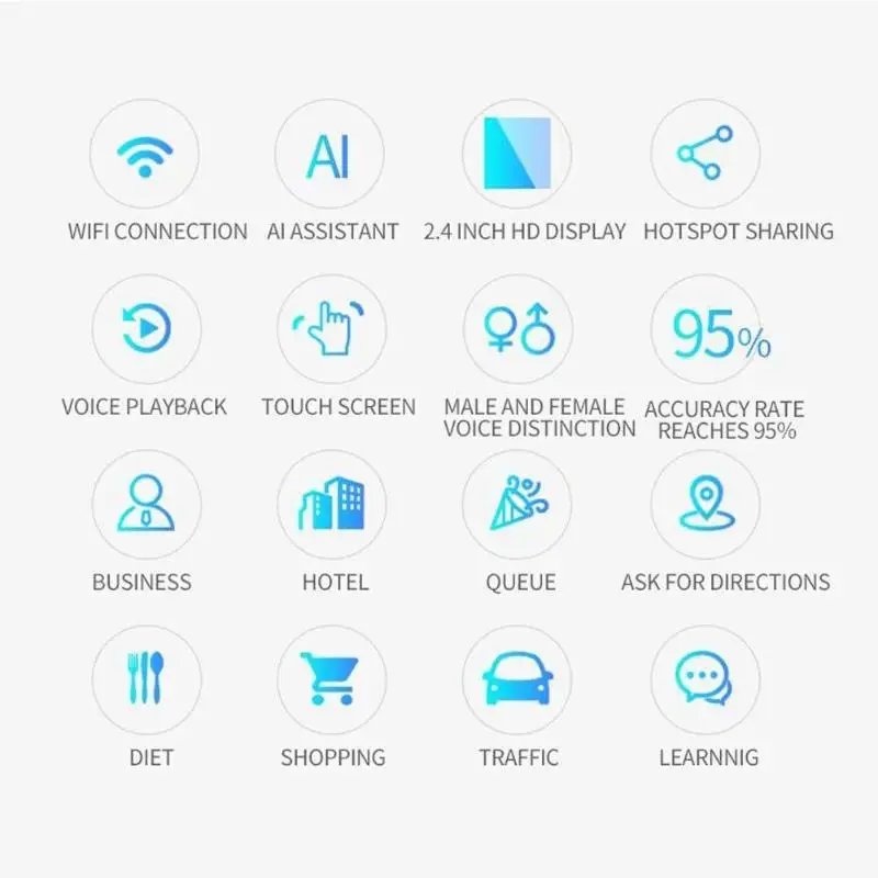 Поддержка 126 языков переводить друг друга (74 диалекта, 52 языка) бесплатно для обновления, поддержка обновления OTA (настраиваемый перевод между 159 языками)
