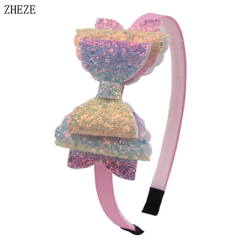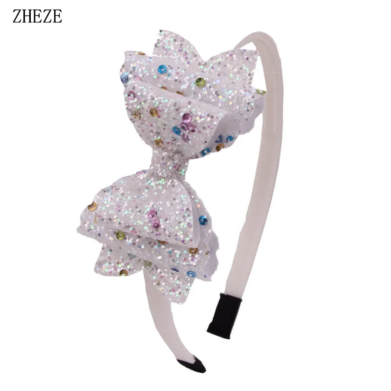 15 шт./лот; Блестящая повязка на голову с бантом для девочек; Многослойная повязка на голову с блестками и цветами; Бант для волос; Детская блестящая головная одежда