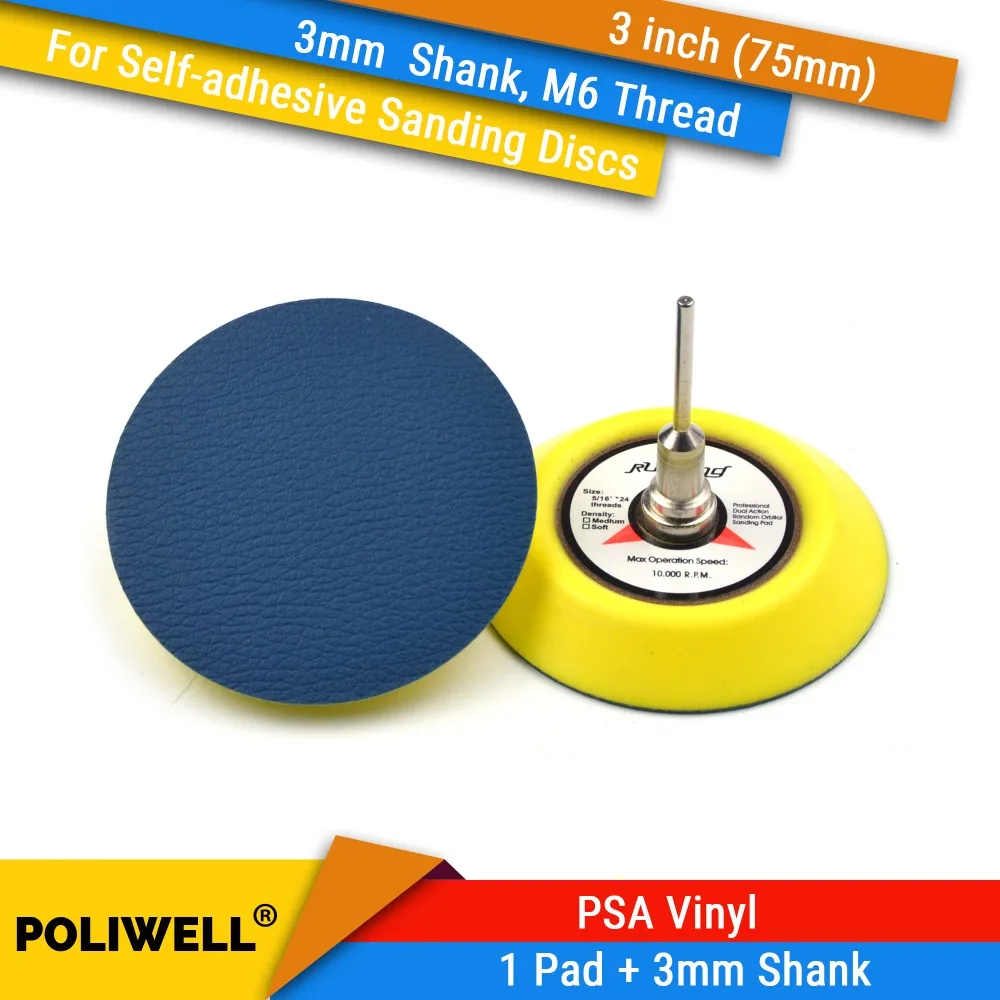 Шлифовальная наждачная бумага, 3 дюйма (75 мм), хвостовик 3 мм, Резьба M6, PSA, виниловая задняя наждачная бумага для самоклеящейся наждачной бумаги, аксессуары для электроинструментов