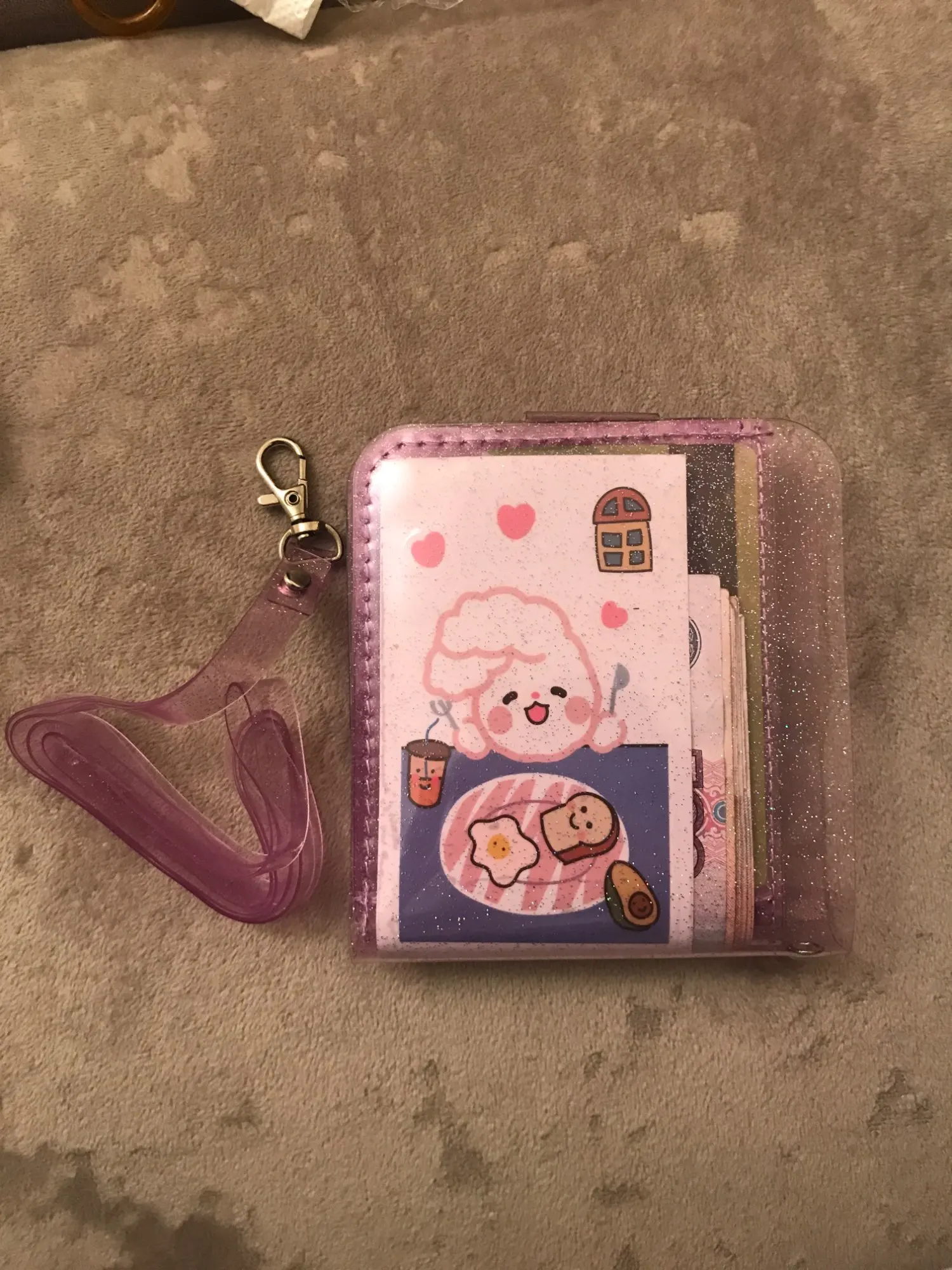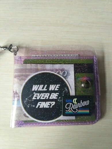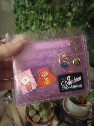 Заказ пришёл ,относительно быстро,но Почта России его потеряла ,поэтому это заняло чуть больше времени)Кошелёк соответствует описанию ,доложили наклейку с зайкой и какого-то айдола (если кто знает из какой он группы напишите пожалуйста)Красивый ,но неудобный и нет отсека для мелочи ,но смотрится прикольно!