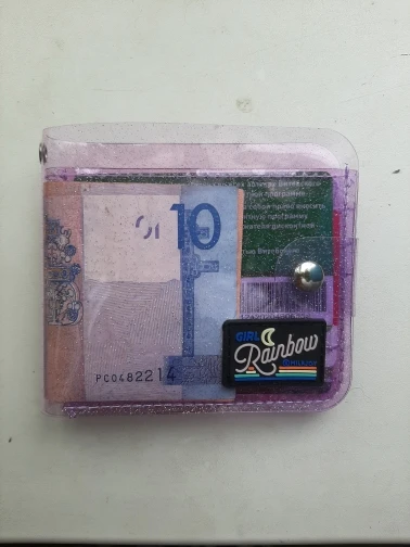 Очень милый! Пахнет дешевым пластиком из 2000-ых, но это только добавляет к атмосфере :) Пара недостатков: пришел очень пыльным (но его же можно мыть, поэтому и ладно) и кнопка была немного потерта (на фото видно). В целом пока довольна, за свои деньги кошелечек просто великолепный!