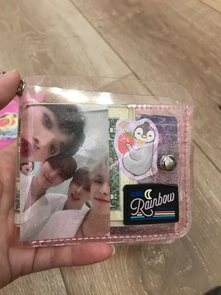 Кошелек изготовлен из довольно прочного пластика, поэтому он немного уютнее, когда пытаемся положить карты в прорези. Что касается дизайна, он очень милый и очень настраиваемый. Я являюсь поклонником k-pop, я люблю настраивать его с помощью наклеек и фотокарт (хотя я кладу свои фотокарты в Пенни для дополнительной защиты). В целом, мне очень нравится этот кошелек и я бы порекомендовал его :)