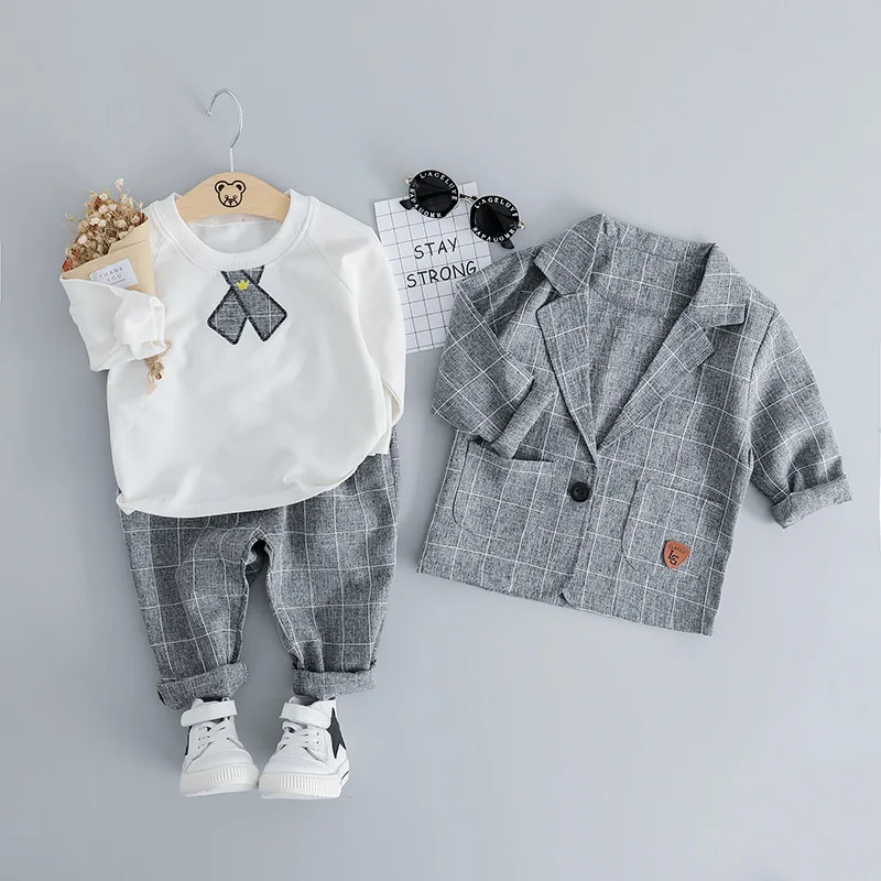 Комплект детской одежды, новый осенний костюм, детская одежда, футболка для мальчиков + пальто + брюки, джентльменские костюмы из 3 предметов для маленьких мальчиков, одежда для детей