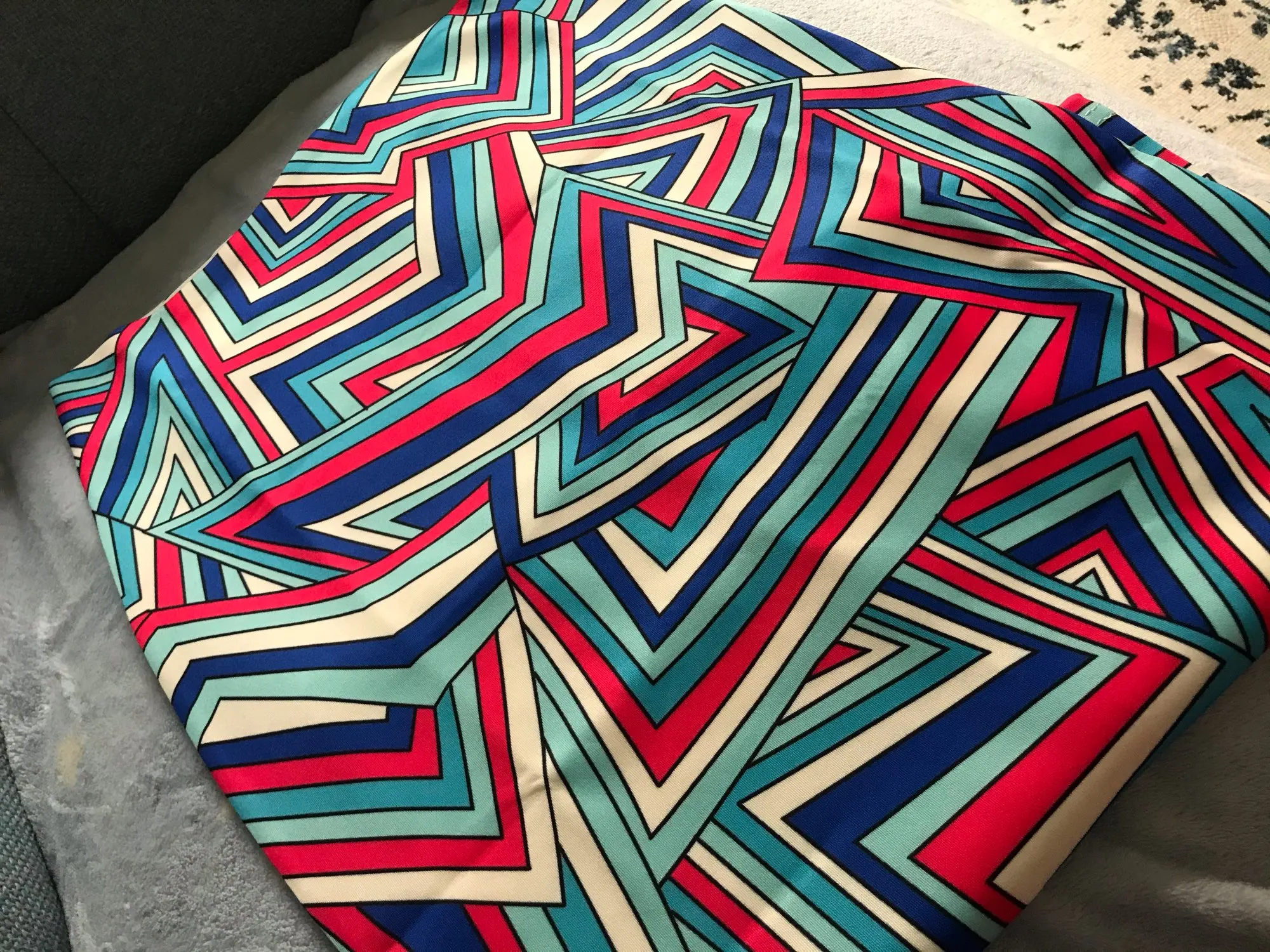 Очень понравилась юбочка, Стильная, цвета все ярки, швы все очень ровно, к телу приятно, похоже на кремплин. Быстрая доставка, спасибо!