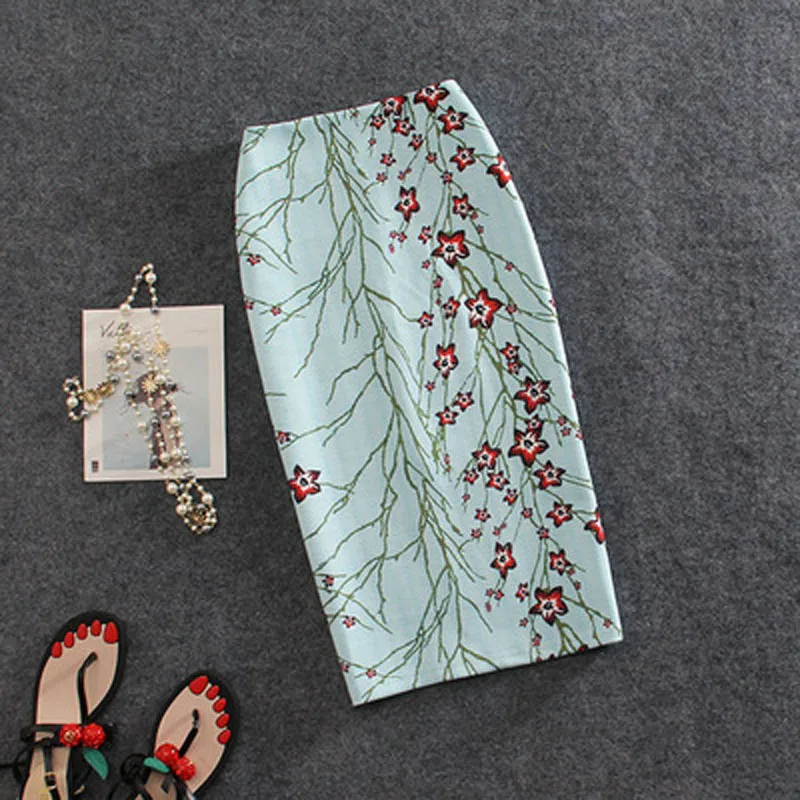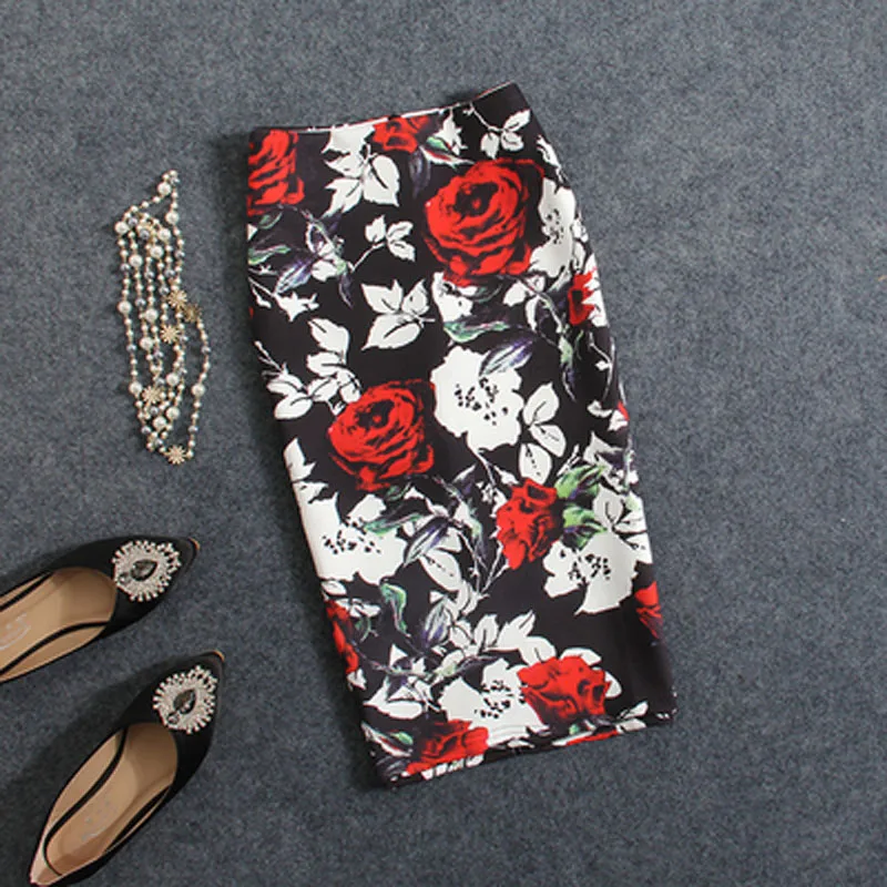 Юбка-карандаш Женская, с цветочным принтом, с завышенной талией, с разрезом, винтажная, SP524