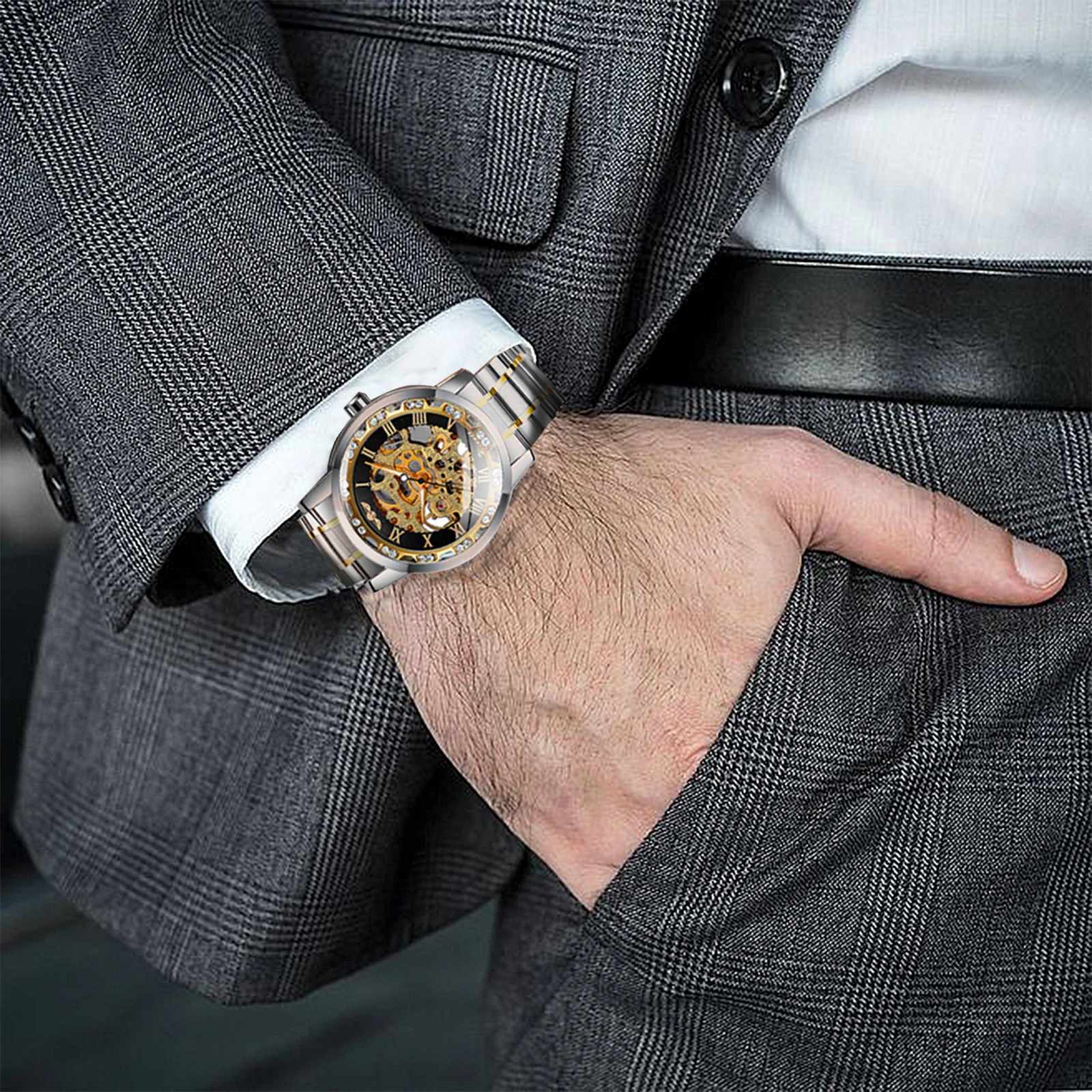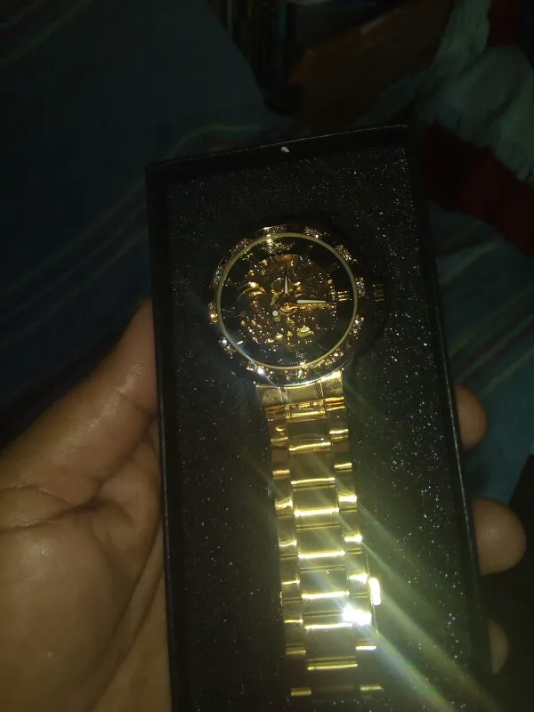 Часы-скелетоны мужские, прозрачные, блестящие, золотые