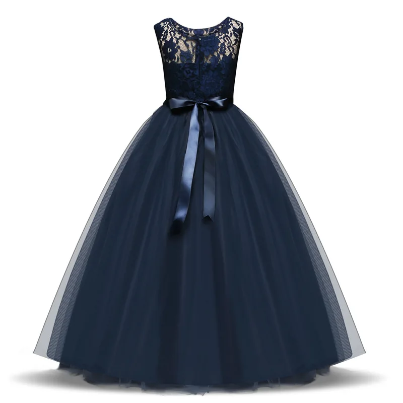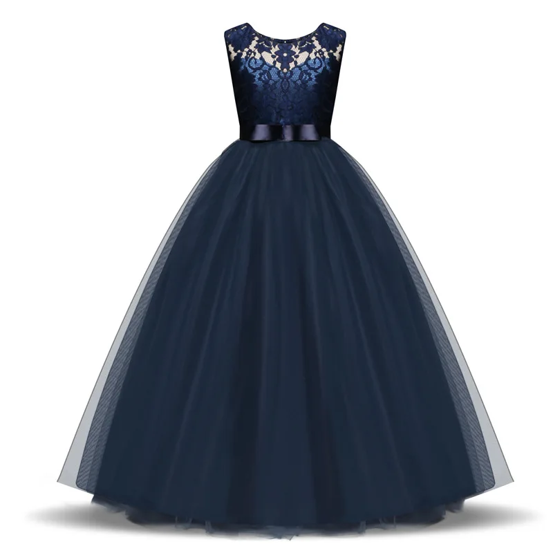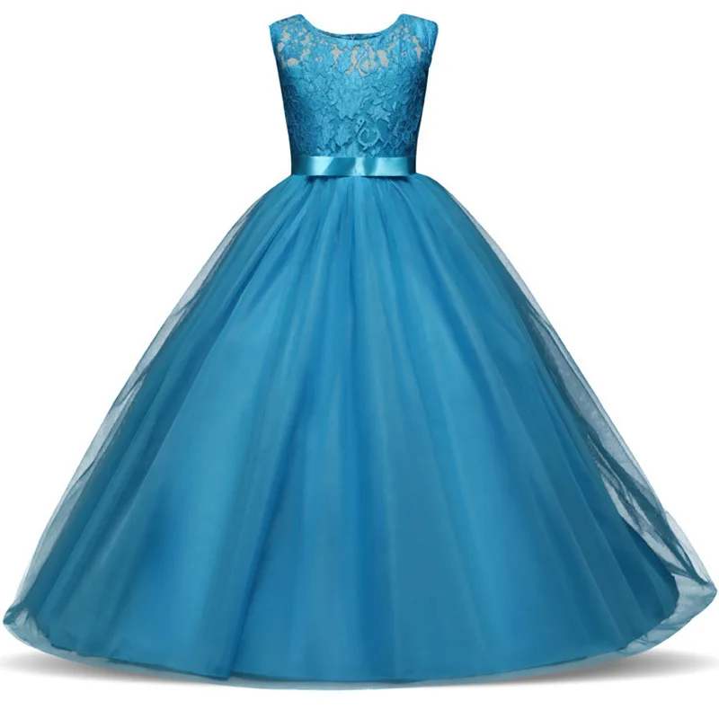 Детское платье для девочек на свадьбу, фатиновое кружевное длинное платье для девочек, элегантное праздничное платье принцессы, торжественное платье для подростков