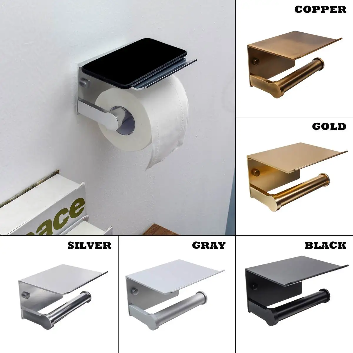Держатель для телефона, для ванной, туалета, держатель для бумажных полотенец, настенный держатель для бумаги с полкой, вешалка для полотенец, коробки для салфеток, черный