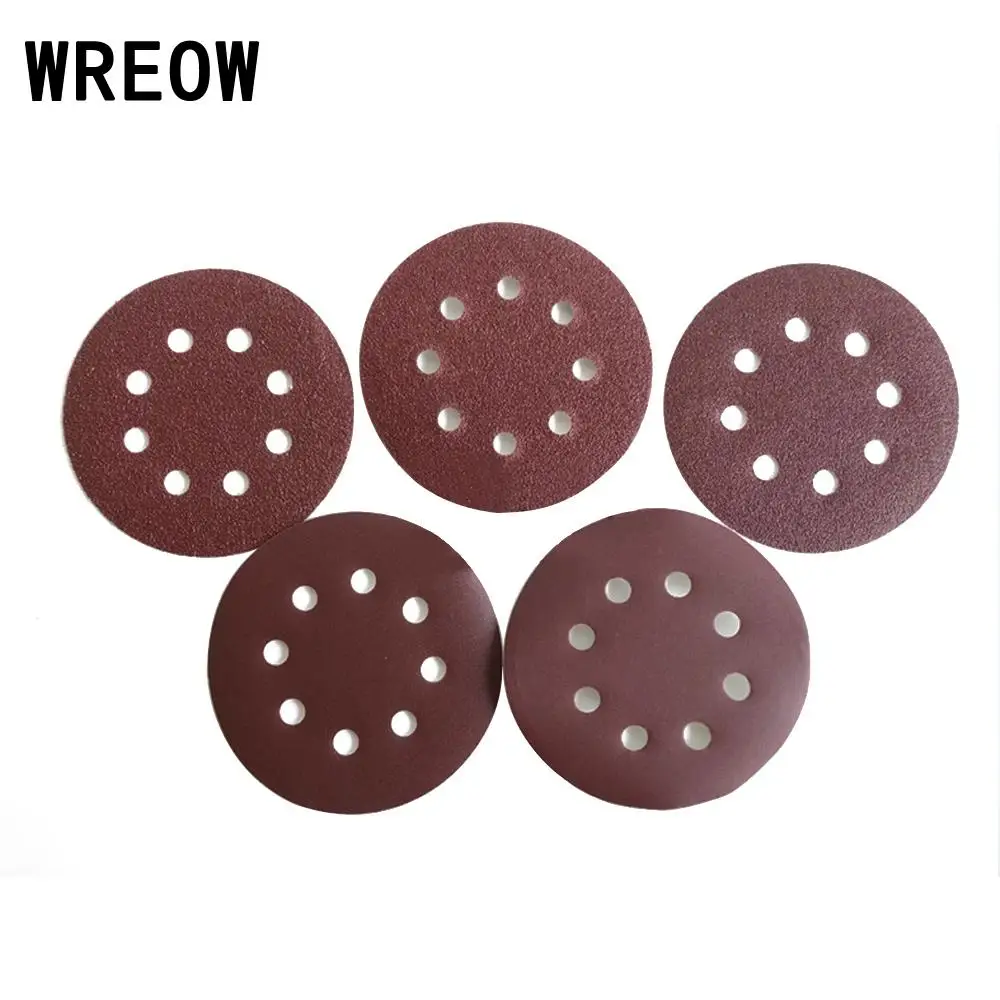 10 шт набор наждачных работ 5 дюймов 8 отверстий круглые абразивные Липучки Шлифовальные Диски