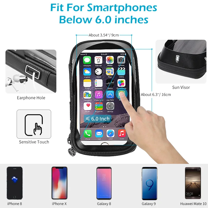 Сумка на руль велосипеда, 6,0 дюйма, мобильный телефон дюйма, водонепроницаемая