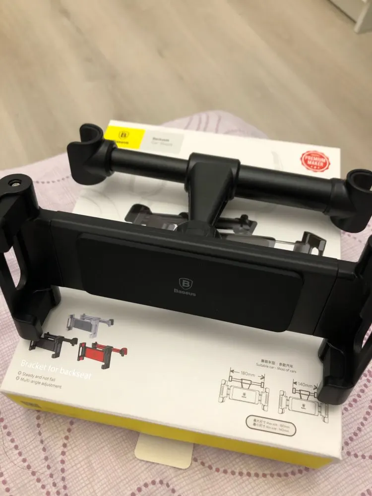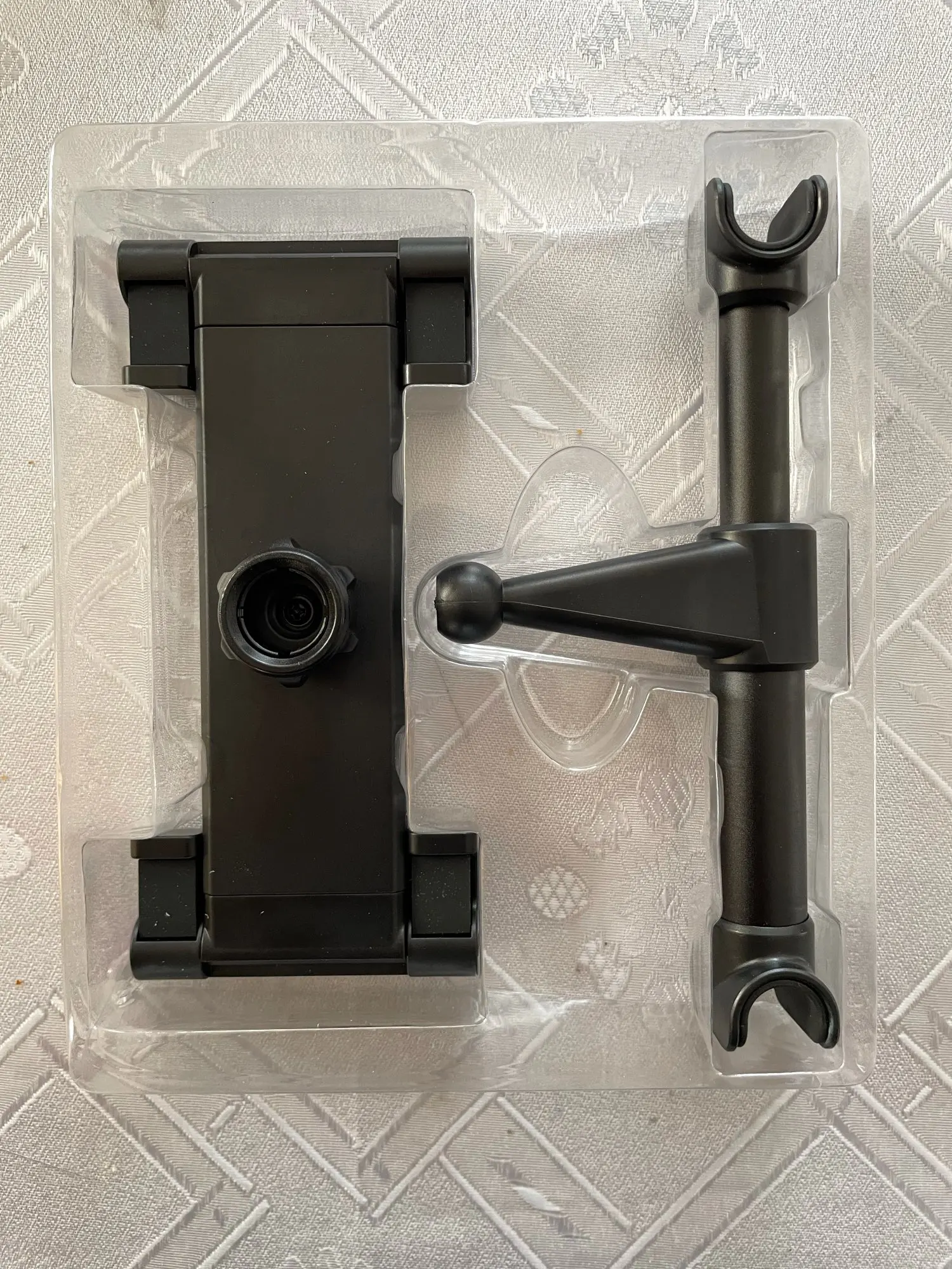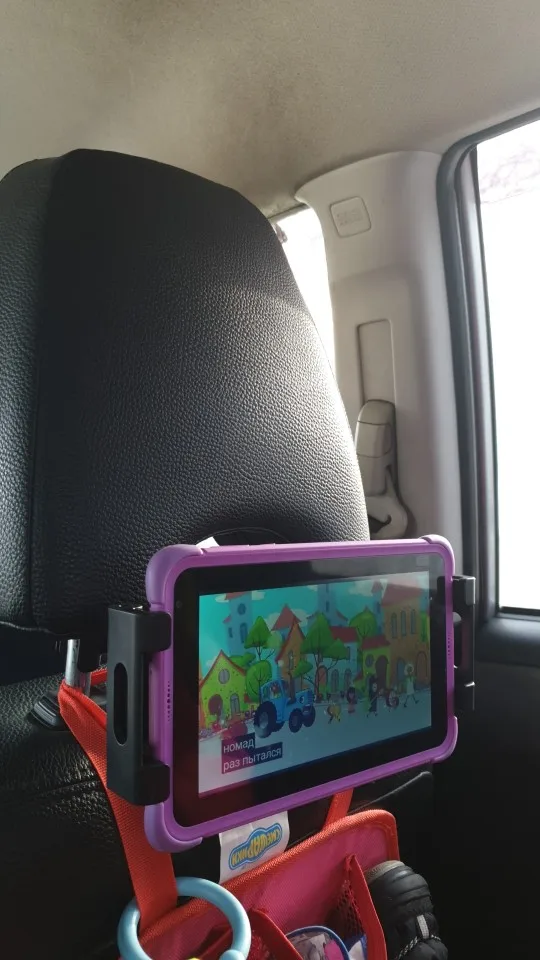 Доставка в Волгоград 16 дней. Крепление качественное, никакого облоя и заусенцев. Резинки мягкие, пластик похож на аллюминий. Планшет и телефон держит хорошо. Немного болтается на дугах подголовника, надо будет что-то подмотать.
