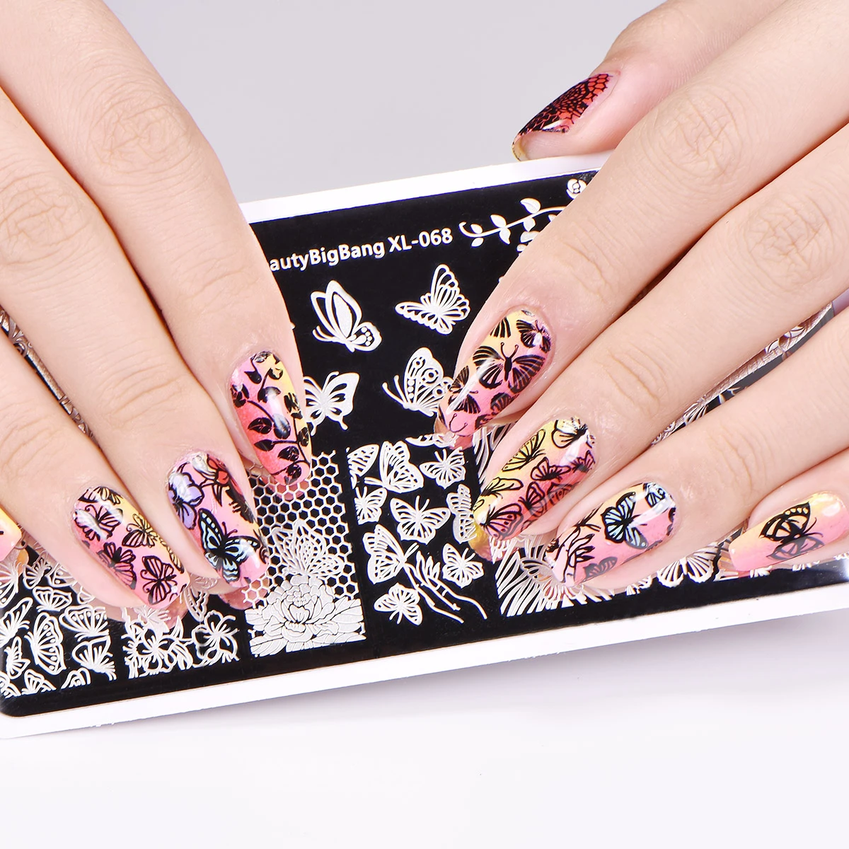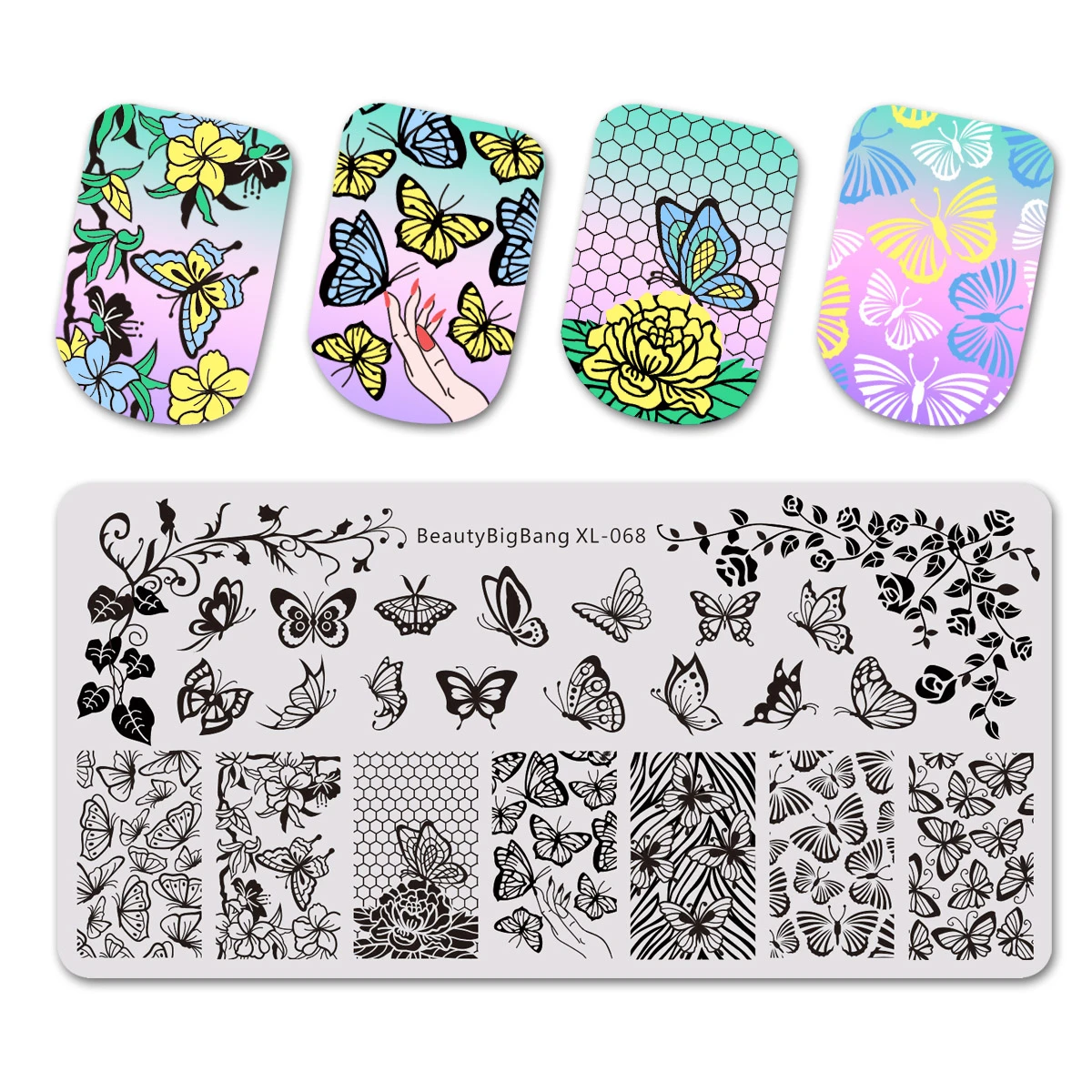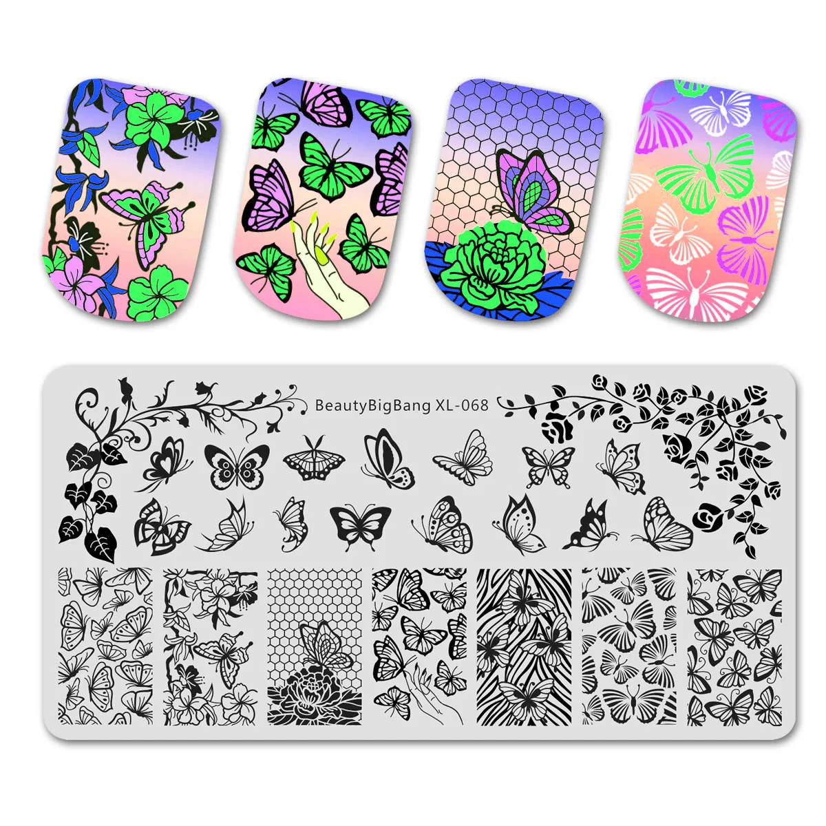 BEAUTYBIGBANG штамповочная пластина для ногтей 6*12 см прямоугольная Цветочная бабочка Тема аксессуары для дизайна ногтей шаблон инструмента шаблон для печати формы