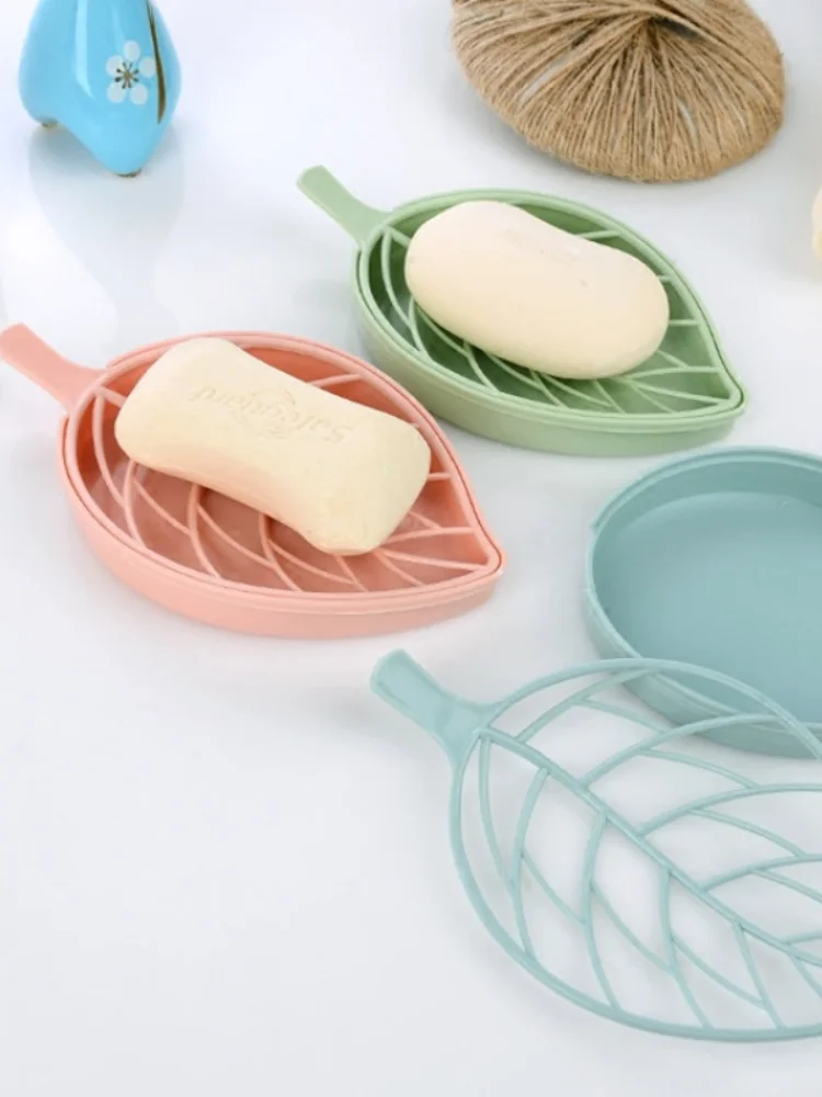 3 шт.лот пластиковый ящик для хранения листьев мыла из полипропилена двухслойный синий зеленый розовый лист дерева контейнер для хранения туалетного мыла