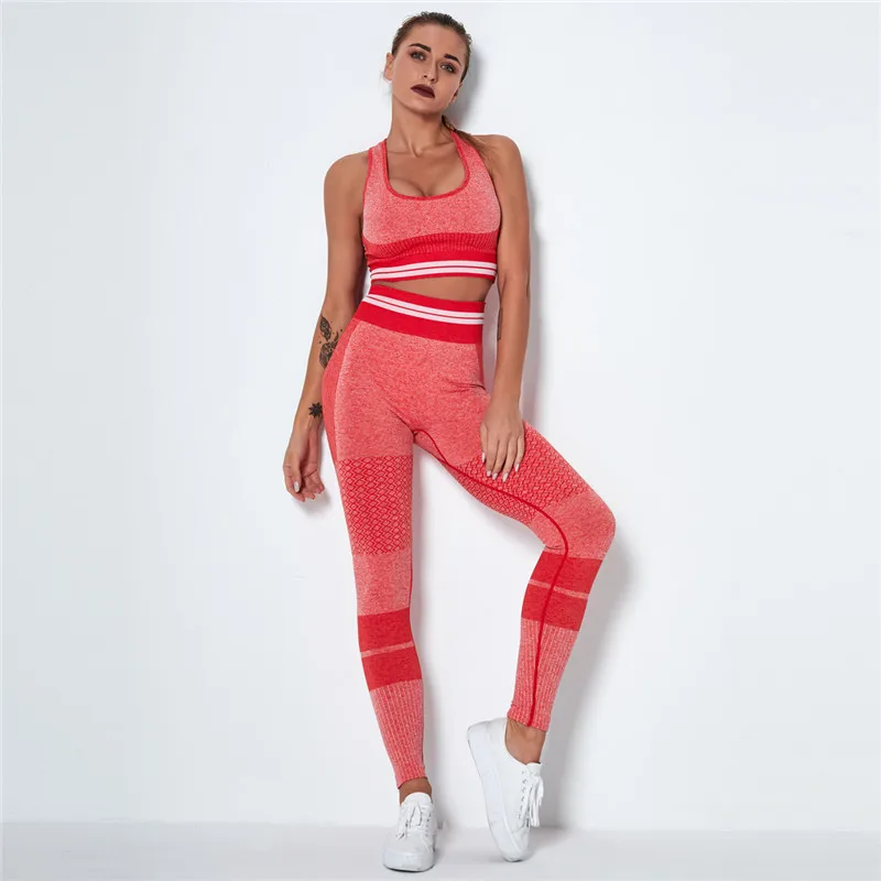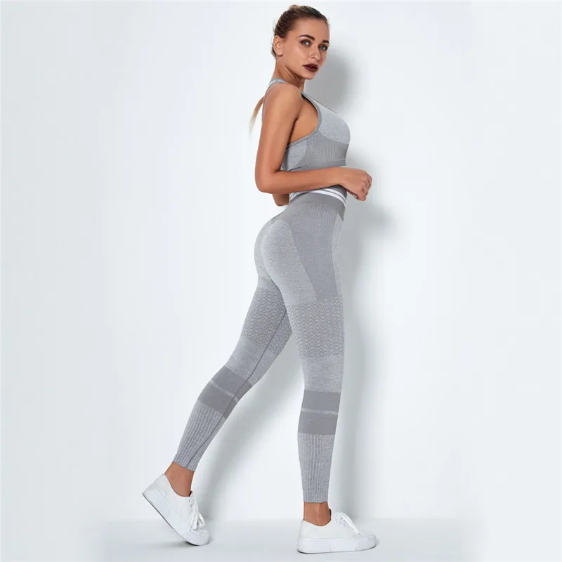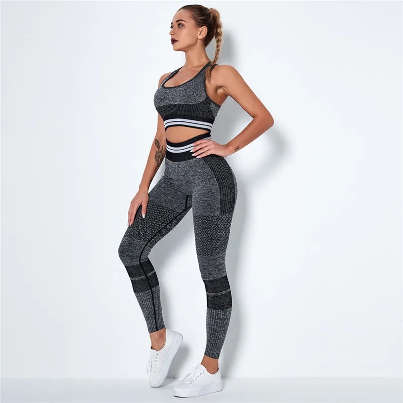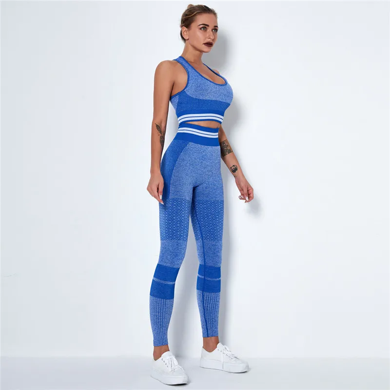 Комплект Спортивный бесшовный из топа и бюстгальтера пуш-ап с эффектом омбре