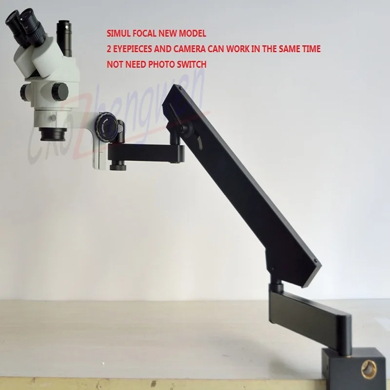 Большой 7X-45X Тринокулярный Стерео Зум-микроскоп на артикуляционной руке с зажимом