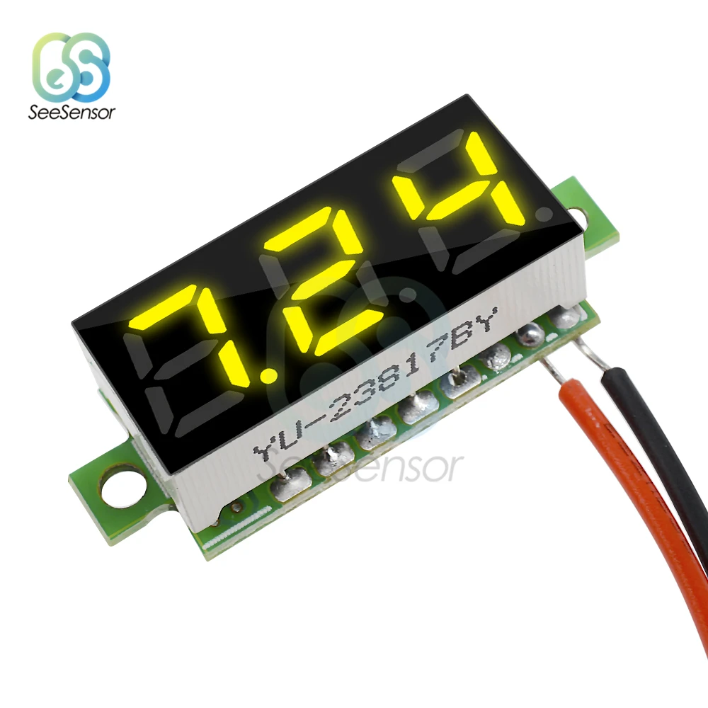 Цифровой вольтметр, миниатюрный светодиодный измеритель напряжения, 0,28 дюйма, диапазон измерений 0-100 в, 12 В, красный, зеленый, синий, желтый, белый цвета