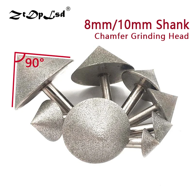 ZtDpLsd 1 шт. 20-60 мм Алмазная конусная фаска с покрытием Шлифовальная головка 90 градусов для камня нефрита стекла сверления фаски Шлифовальная головка