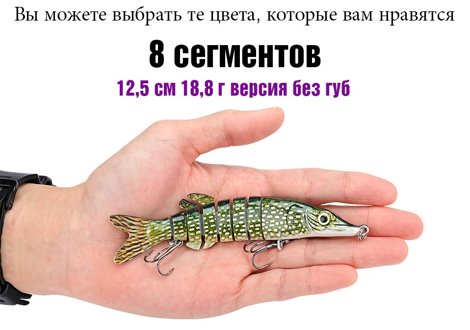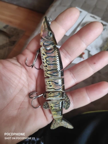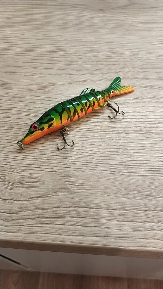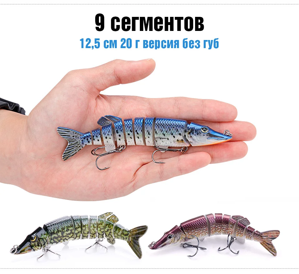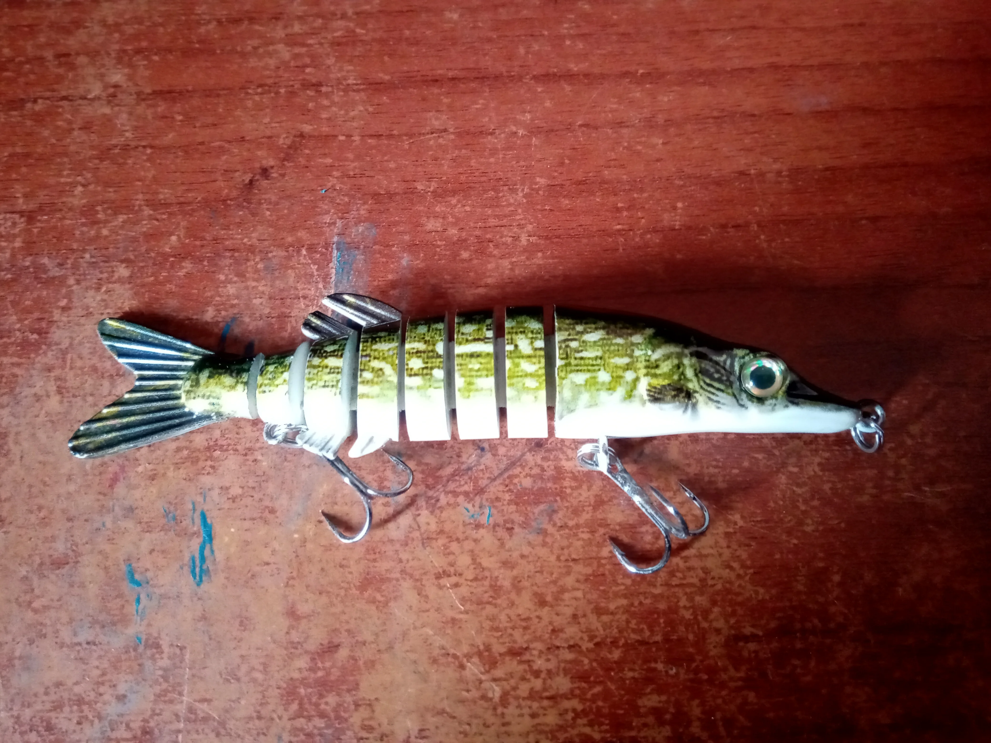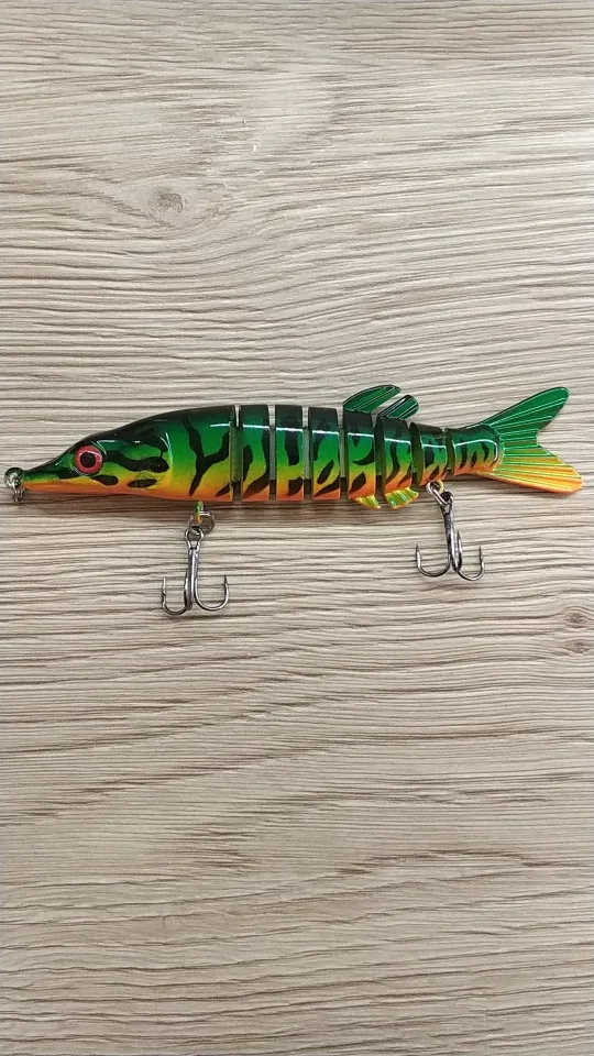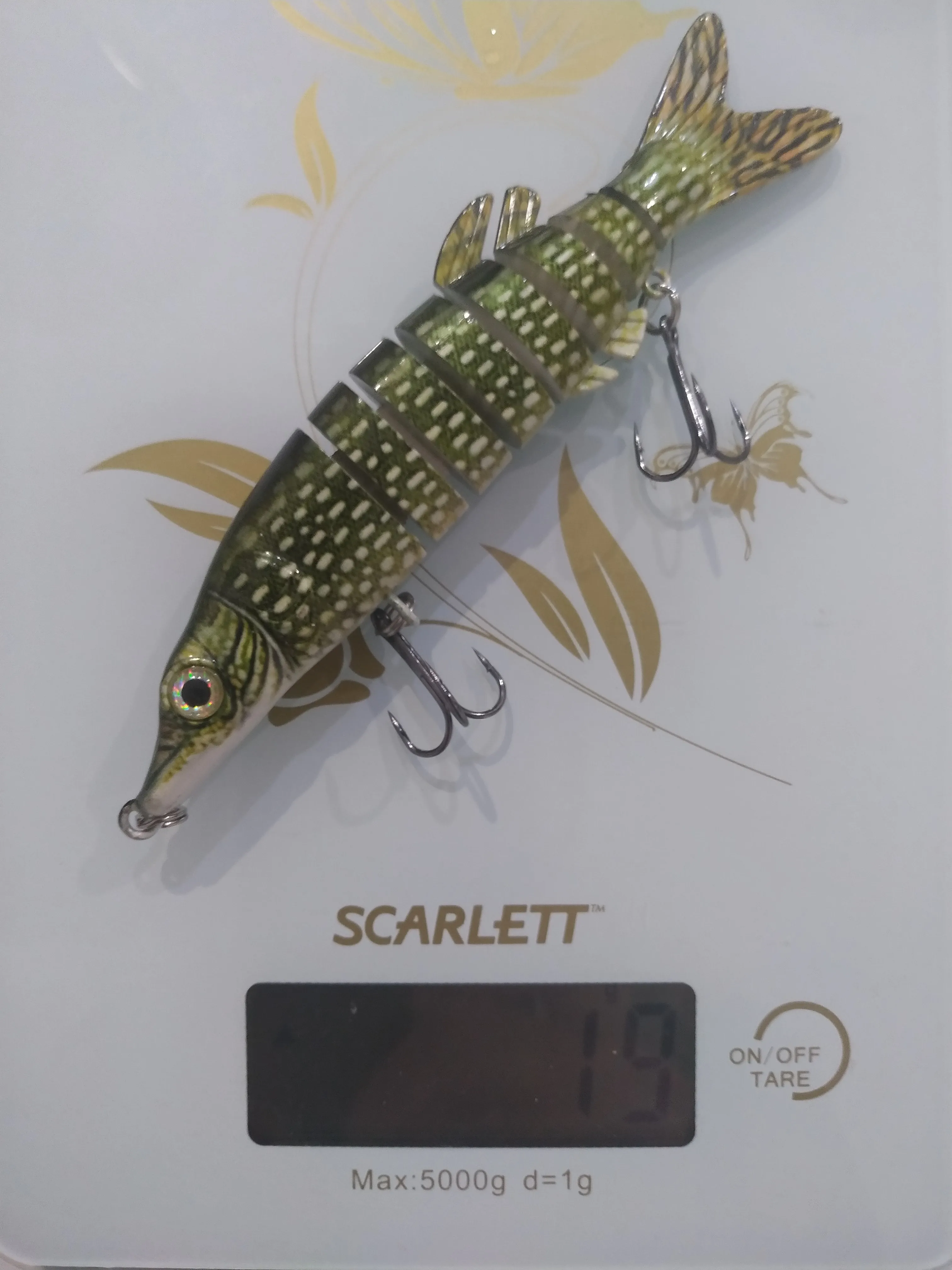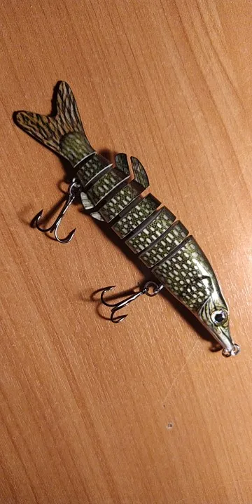 Брал воблер TREHOOK, гибкий, 12,5 см, 18 гр, 8 сегментов, цвет: B сделан классно, цвета шикарные и хорошо покрыт лаком. С виду как настоящий, На стояцей воде играет слабо при проводке, но если есть хоть небольшое течение то всё хорошо. Пару раз его помочил, но еще ни чего на него не поймано. Рекомендую