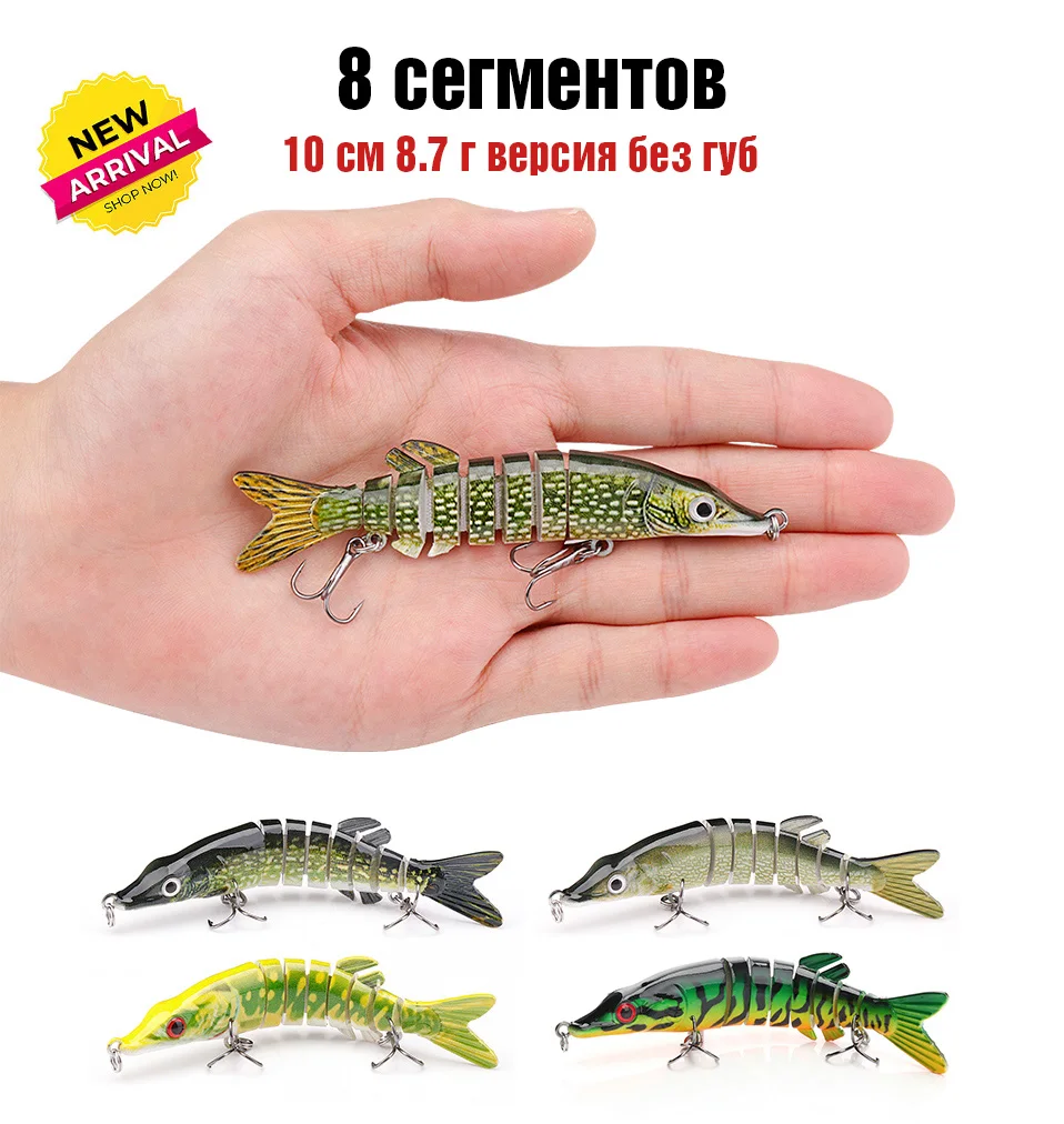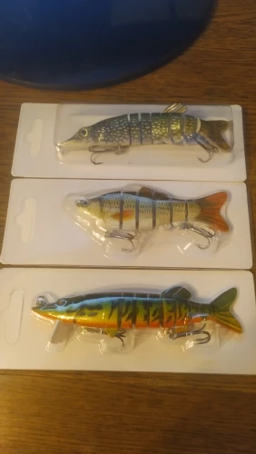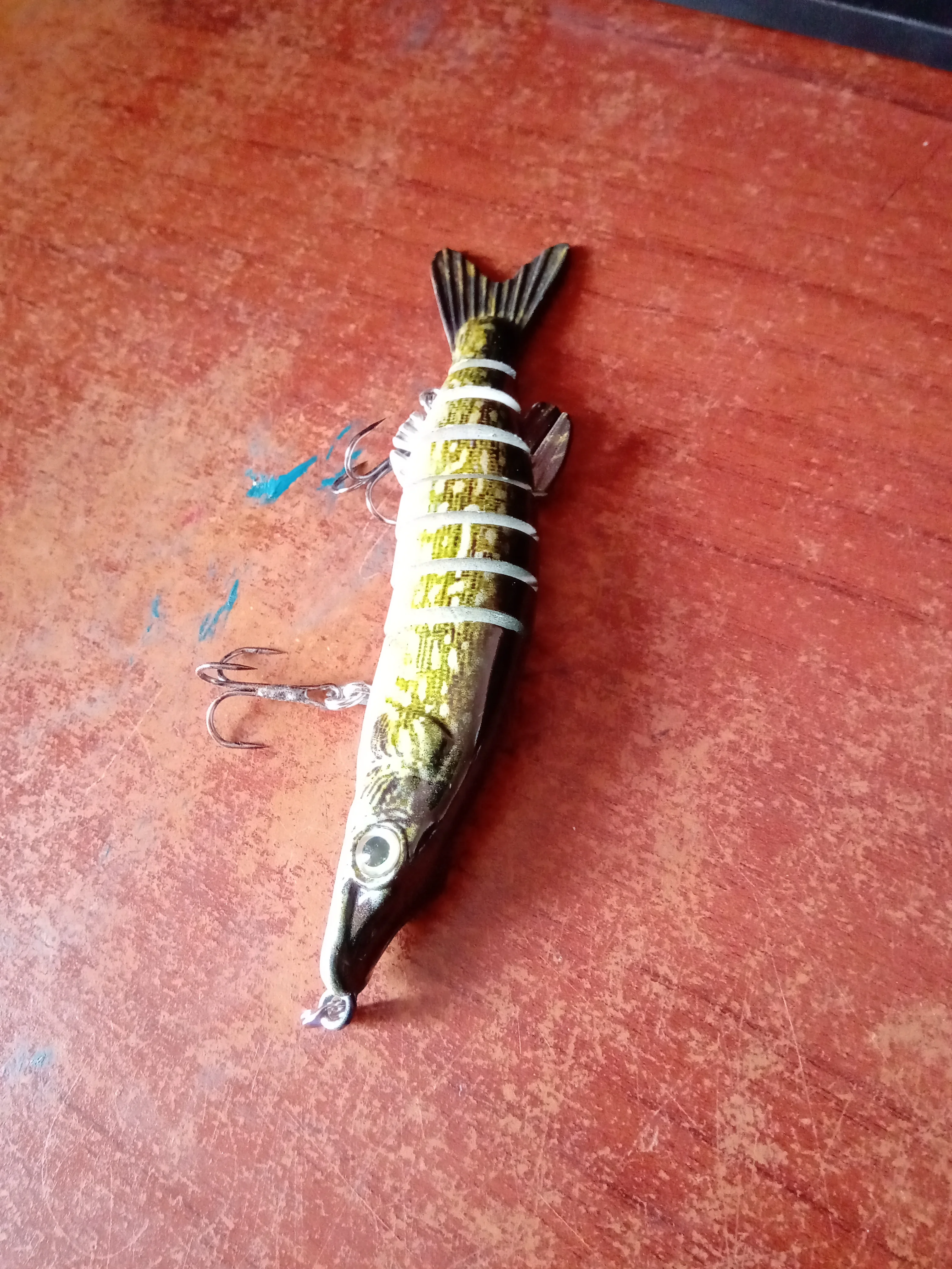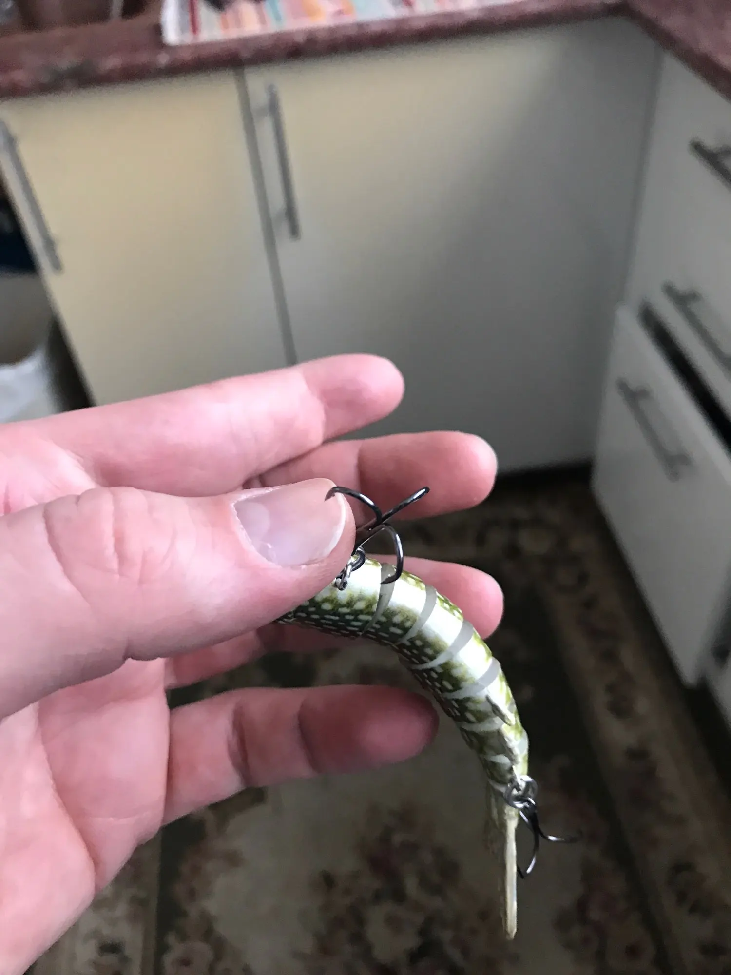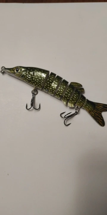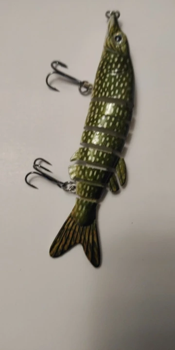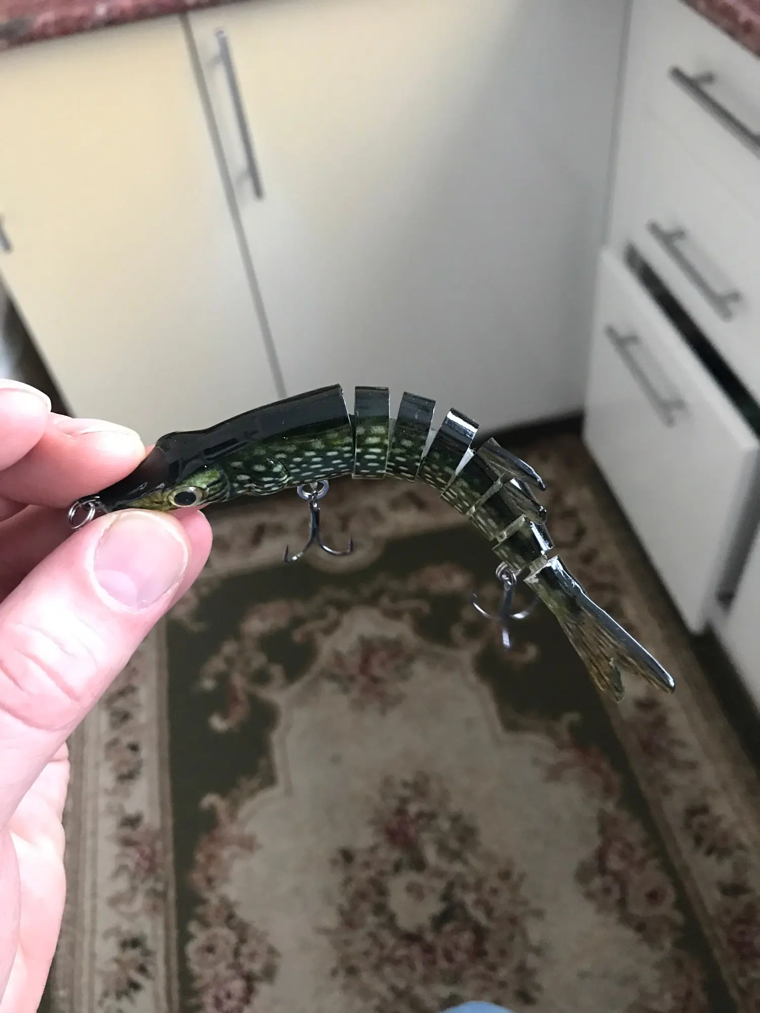 Брал воблер TREHOOK, гибкий, 12,5 см, 18 гр, 8 сегментов, цвет: B сделан классно, цвета шикарные и хорошо покрыт лаком. С виду как настоящий, На стояцей воде играет слабо при проводке, но если есть хоть небольшое течение то всё хорошо. Пару раз его помочил, но еще ни чего на него не поймано. Рекомендую