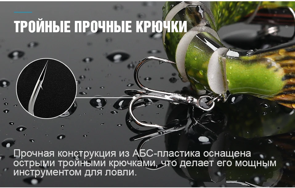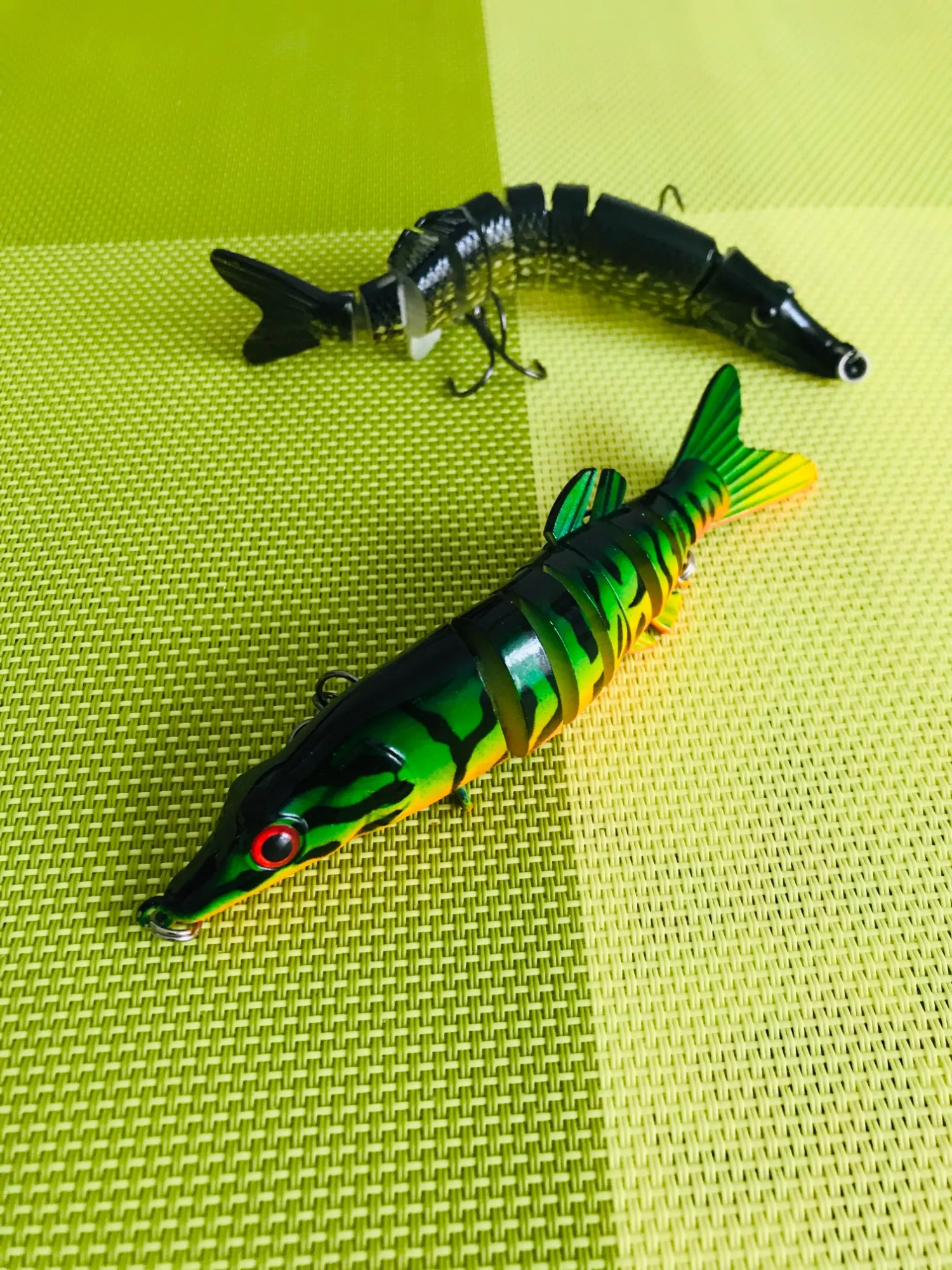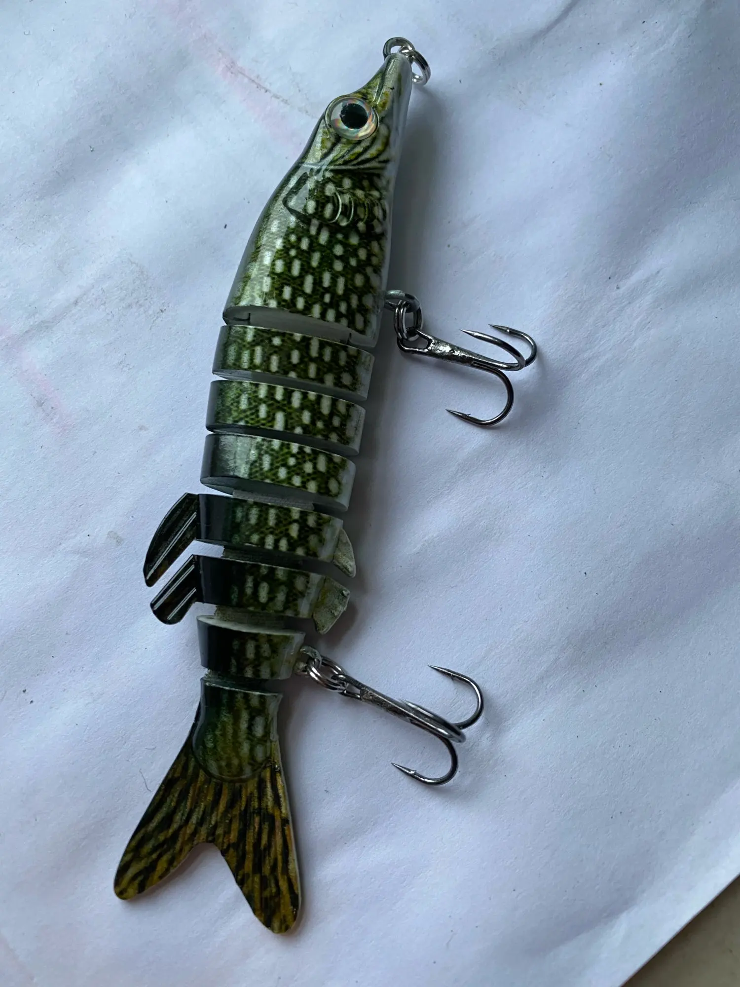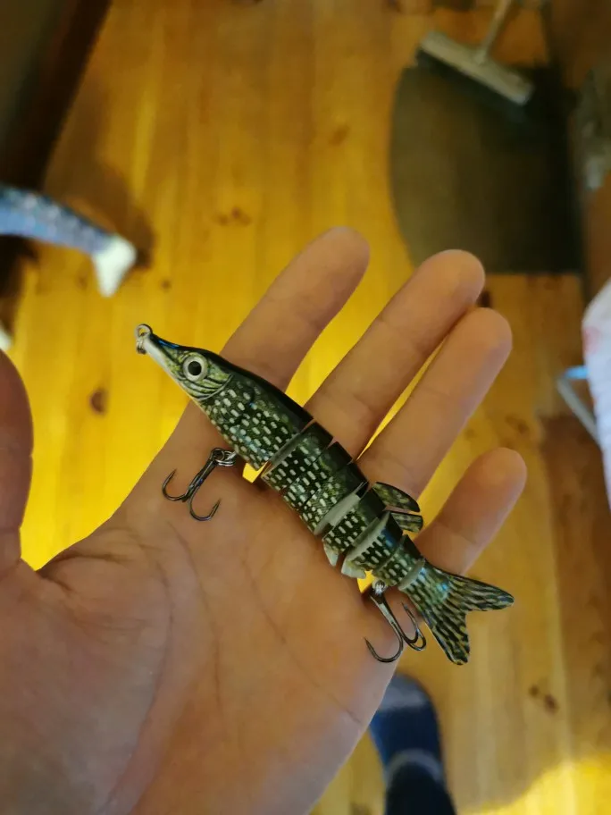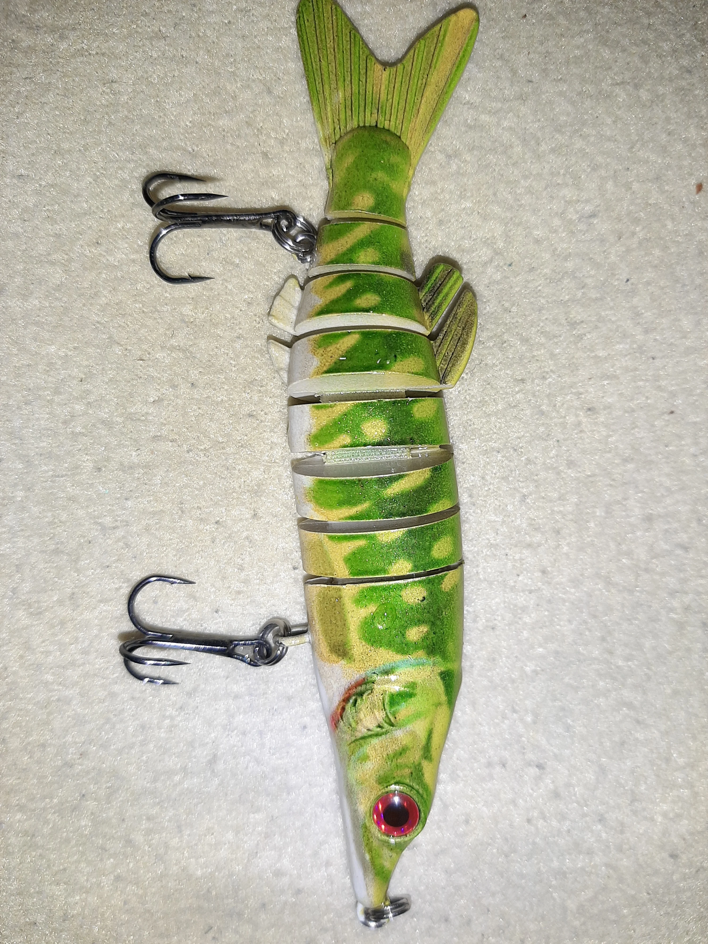 Брал воблер TREHOOK, гибкий, 12,5 см, 18 гр, 8 сегментов, цвет: B сделан классно, цвета шикарные и хорошо покрыт лаком. С виду как настоящий, На стояцей воде играет слабо при проводке, но если есть хоть небольшое течение то всё хорошо. Пару раз его помочил, но еще ни чего на него не поймано. Рекомендую