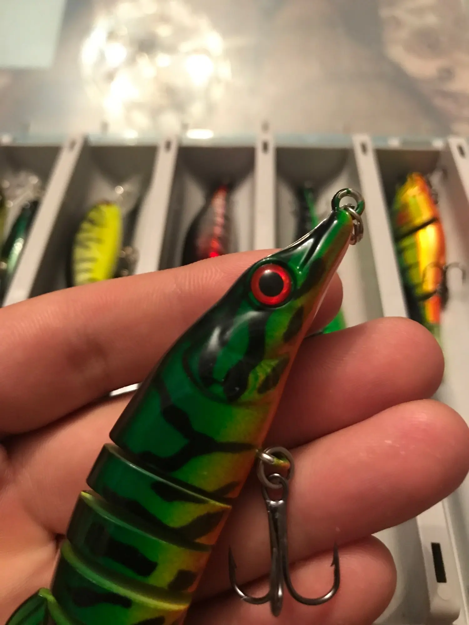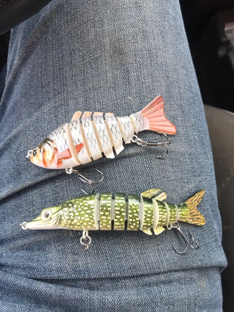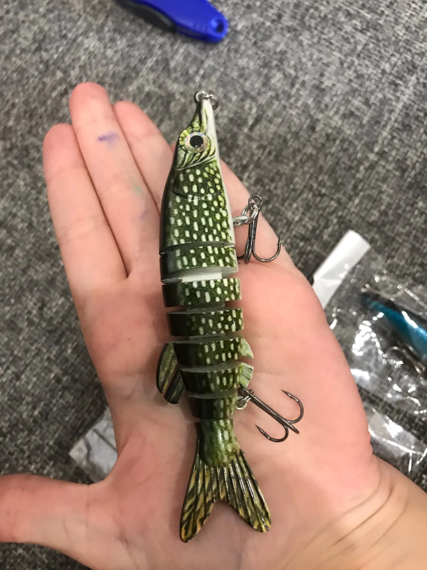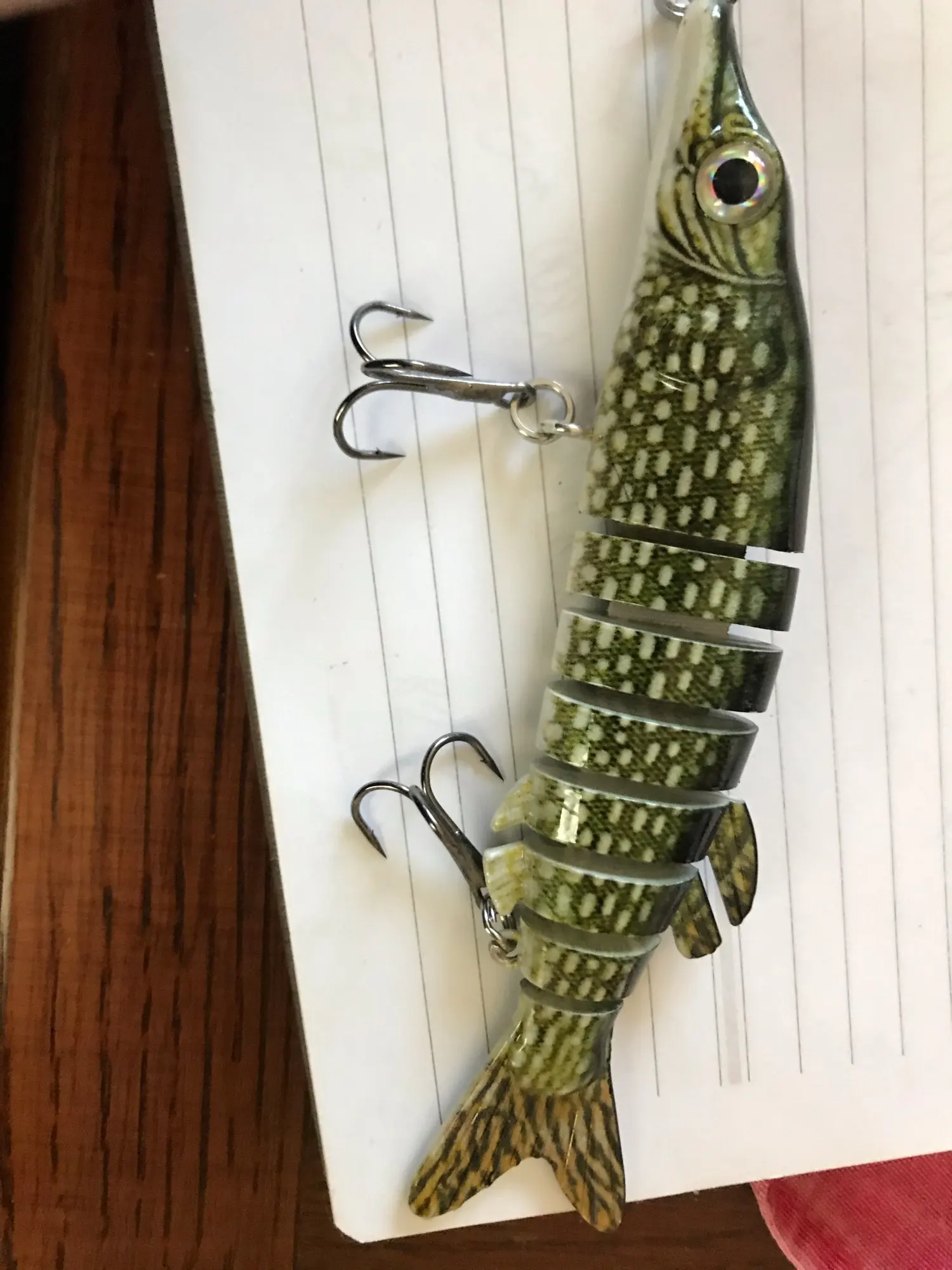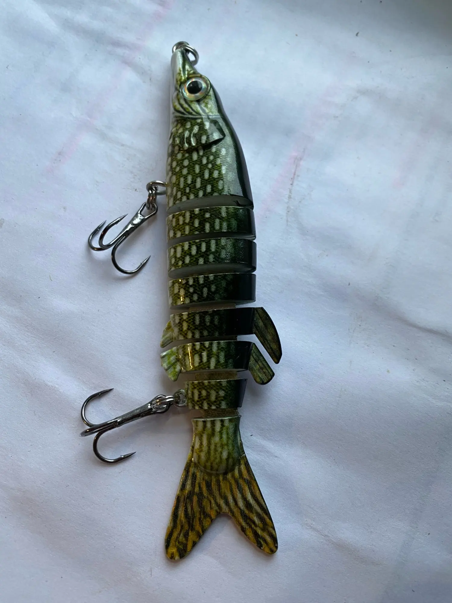 Брал воблер TREHOOK, гибкий, 12,5 см, 18 гр, 8 сегментов, цвет: B сделан классно, цвета шикарные и хорошо покрыт лаком. С виду как настоящий, На стояцей воде играет слабо при проводке, но если есть хоть небольшое течение то всё хорошо. Пару раз его помочил, но еще ни чего на него не поймано. Рекомендую