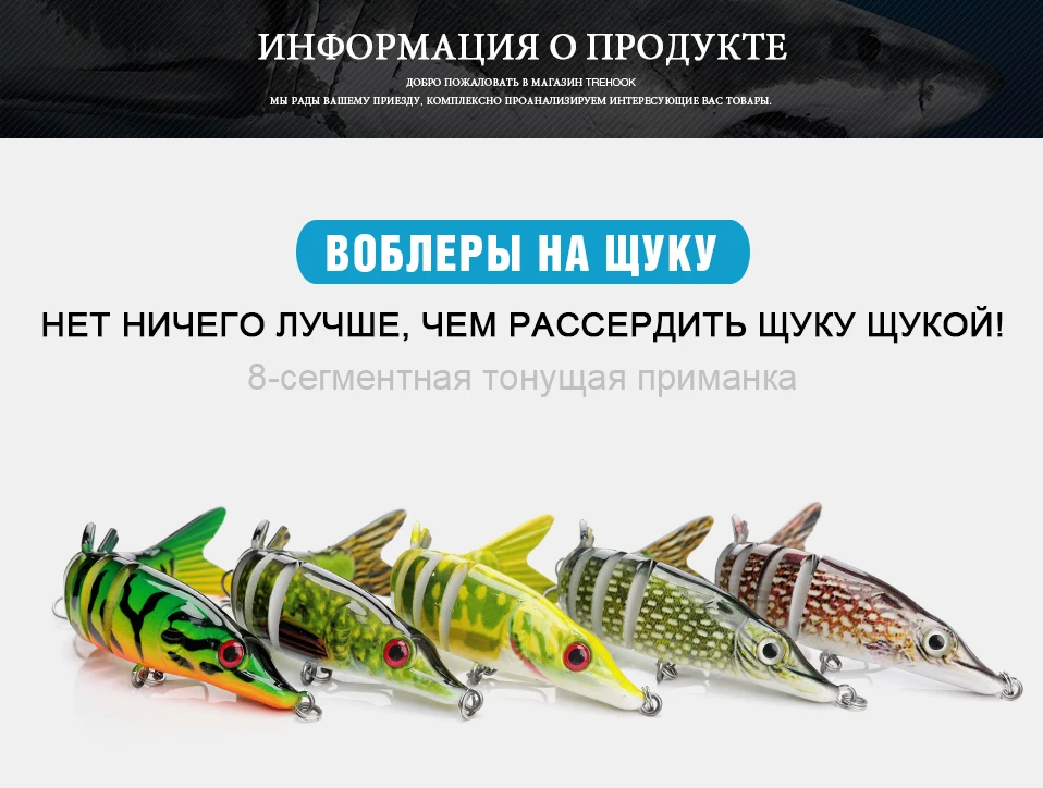 TREHOOK 10 см12,5 см Щука воблеры для рыбалки искусственная приманка жесткая Мульти соединенная Swimbait Crankbait Lifelike Рыболовная Приманка снасти