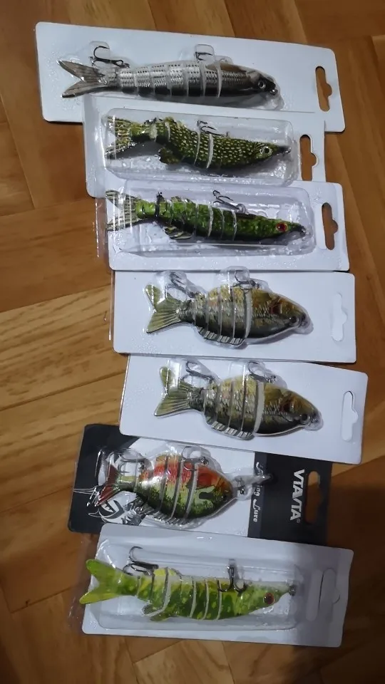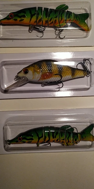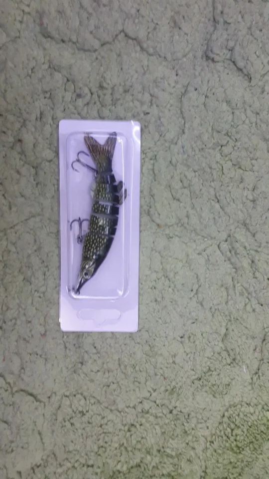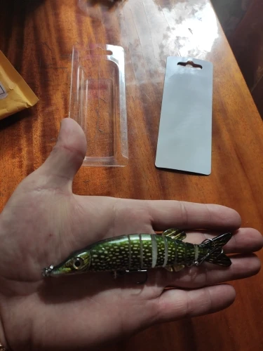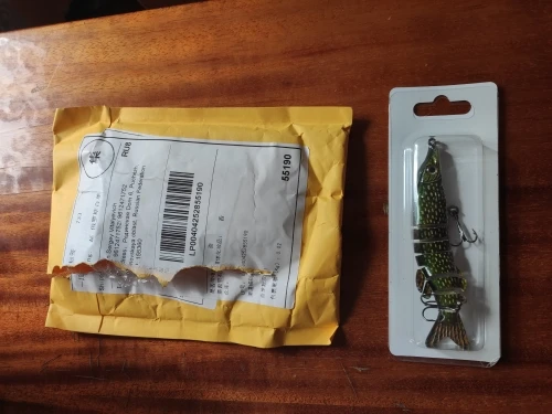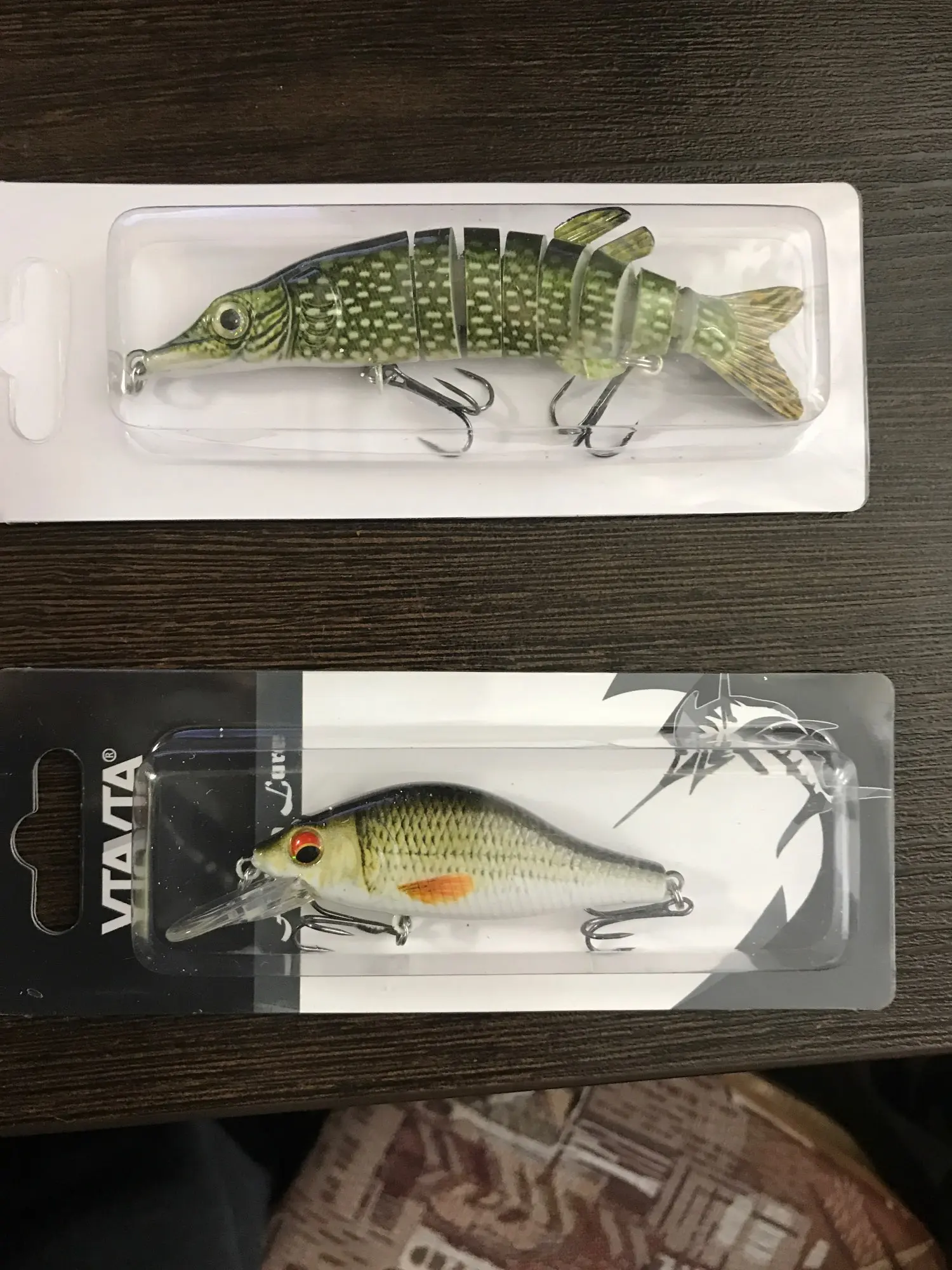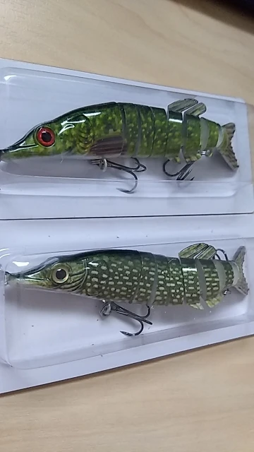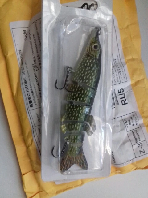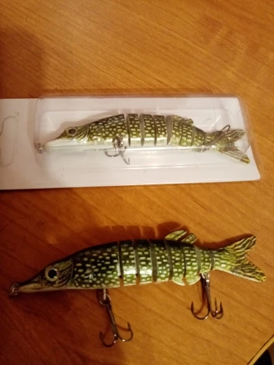 Оба пакета с товаром были упакованы в третий, доставлены в г. Белгород на 10-ый день после заявки. Воблеры опробованы в природном водоёме на предмет их игры. Не знаю, как щука, но я бы на такую анимацию повёлся наверняка))). Приятно, что продавец предупредил о скором прибытии товара и его слова, действительно, не разошлись с делом. Скорее всего поменяю тройники,на воблере из восьми сегментов, на чуть бОльшие.