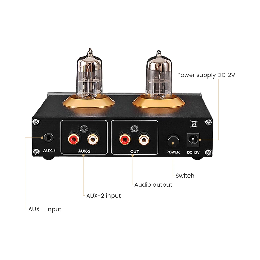 6N3 вакуумный трубный преусилитель + усилитель для наушников с высокой и низкой функцией регулировки звука, вы можете регулировать высокую и низкую частоту в соответствии с вашими потребностями. Вакуумный трубный преампер с аудиодекодером MAX9722 наушники с чипом усилителя; Удобный для улучшения качества звука Вход аудиосигнала может быть компьютером, CD, телефоном и проигрывателем без потерь Аудио вход: RCA ,AUX 3,5 мм стерео вход Аудио выход может быть подключен к цифровой усилители и активные мультимедия аудиоустройства Высокие частоты и регулировка басов; Звук теплый и широкий; Нет фонового шума Позолоченные клеммы для ввода и вывода; 6N3 клапанная трубка; Мини-размер подходит для рабочего стола