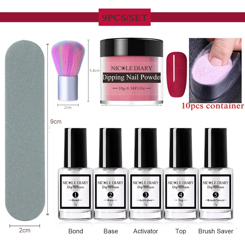NICOLE DIARY-это бренд для дизайна ногтей, основанный в 2011 году компанией «NICOLE», она считает, что «nail art s» является одним из способов, которым люди могут чувствовать себя креативными и искусными, как и должно быть, Нейл-арт." «Нет, где вы находитесь, нет, когда это происходит, везде это происходит, потому что ваша мечта причудливая! «NICOLE DIARY стремится создавать Страстные и персонализированные штамповки для клиентов, так что каждый опыт ногтей уникален. Описание продукта:Бренд: NICOLE дневникТип: окунающий порошок для ногтейТаблица цветов: 10 цветов на выборКоличество: 1 коробкаЁмкость: 10 гЭффект: телесный Цвет Посылка содержание9 шт. 10 г NICOLE DIARY окунания порошка для ногтей/3 шт или 5 шт система погружения жидкости Преимущества1. Окунающий порошок для ногтей легко сделать с французским и градиентным эффектом.2. Преимущества просты и быстро наносятся, более долговечны, чем лак для ногтей, а недостатком является то, что его нелегко снять (так же, как и гель для ногтей)3. Может использоваться на натуральных ногтях и накладных ногтях.4. Обеспечить фантастический естественный вид ваших ногтей.5. Идеально подходит для домашнего использования или профессионального использования. Способ примененияШаг 1. Подготовьте гвоздь.Шаг 2. Нанесите один слой, подождите, пока он высохнет.Шаг 3. Нанесите тонкое покрытие основы.Шаг 4. Dip-наконечник всего ногтя в блюдо.Шаг 5. Удалите лишний порошок.Шаг 6. Нанесите dip активатор, подождите, пока высохнет.Шаг 7. Форма ногтей и полировка буферной поверхности ногтей.Шаг 8. Нанесите сверху 2-3 быстрых штрихов кисти, подождите, пока она высохнет.