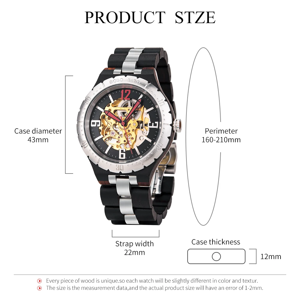 Механические часы BOBO BIRD, мужские деревянные часы, водонепроница...