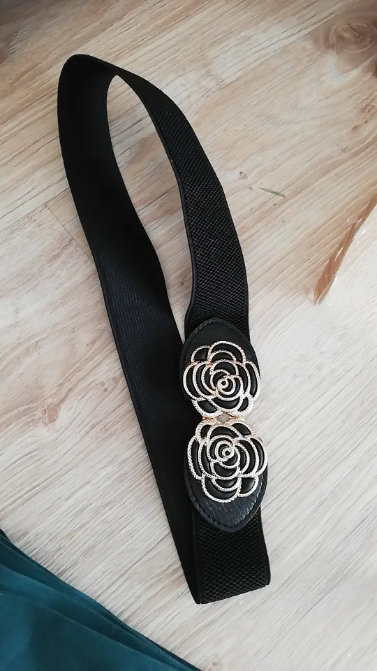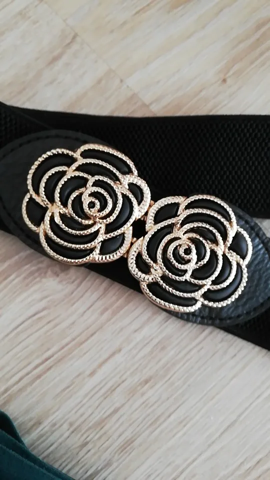Женский широкий пояс, эластичный пояс с пряжкой, винтажный металлический цветок