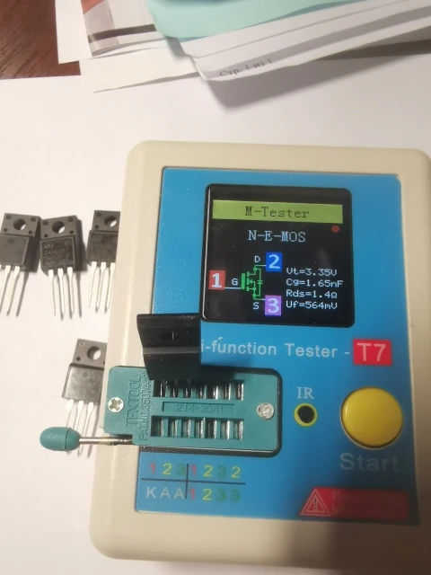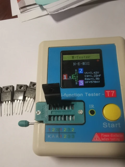 из 5 транзисторов три имеют R 2.7ом.два 1.0 ом. должно 0.18ом. потянут они хотя бы 10 ампер? неизвестно.и такое качество со всеми транзисторами от производителей из китая.лепят любой тип транзистора.а вскроешь ,кристалл в разы меньше оригенального.