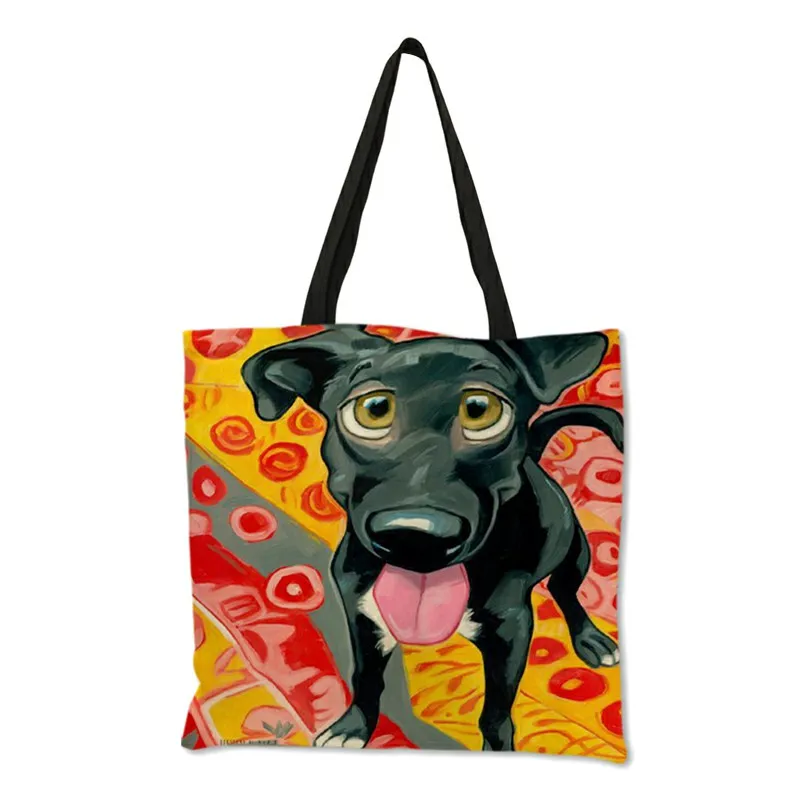 Льняная сумка-тоут с персонализированным изображением собаки, шнауцер, золотой ретривер, Женская тканевая сумка-тоут для покупок, школьные сумки для студентов