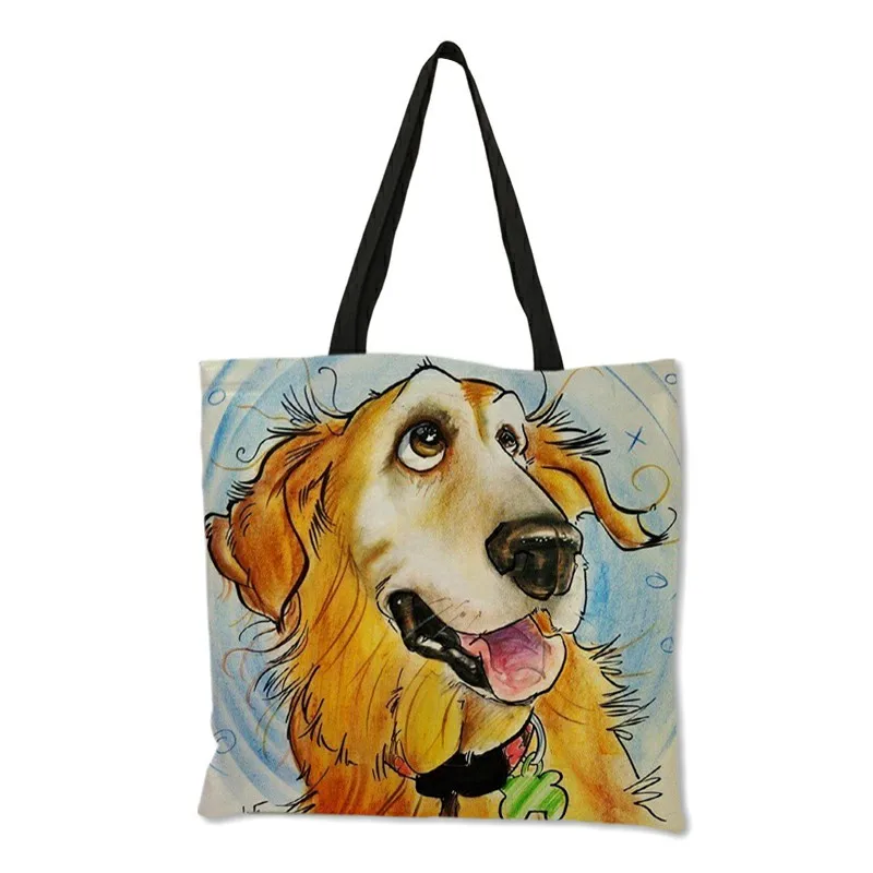 Льняная сумка-тоут с персонализированным изображением собаки, золотистый ретривер, Женская тканевая сумка-тоут для покупок, школьные портфели для студентов