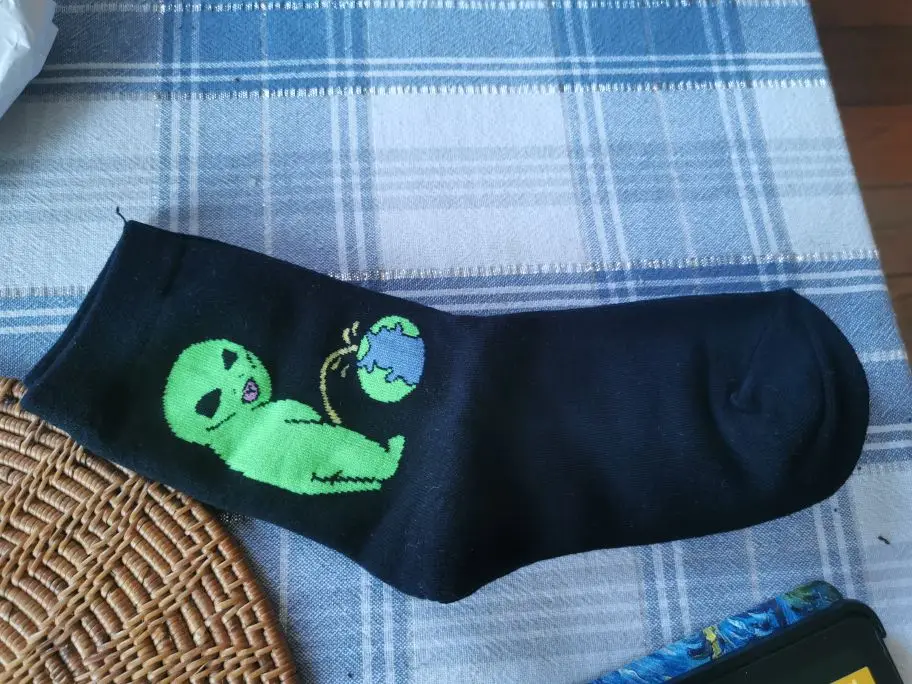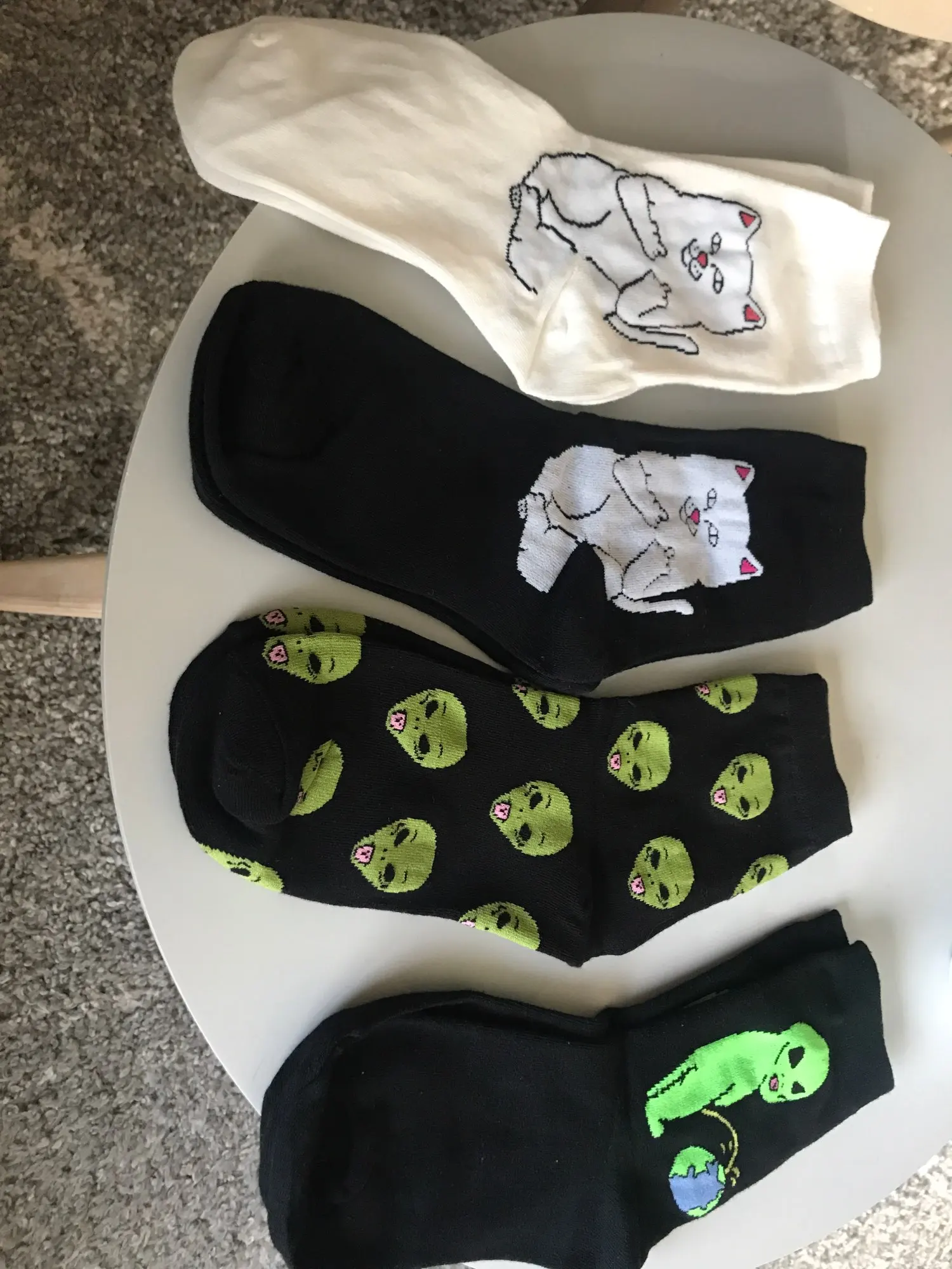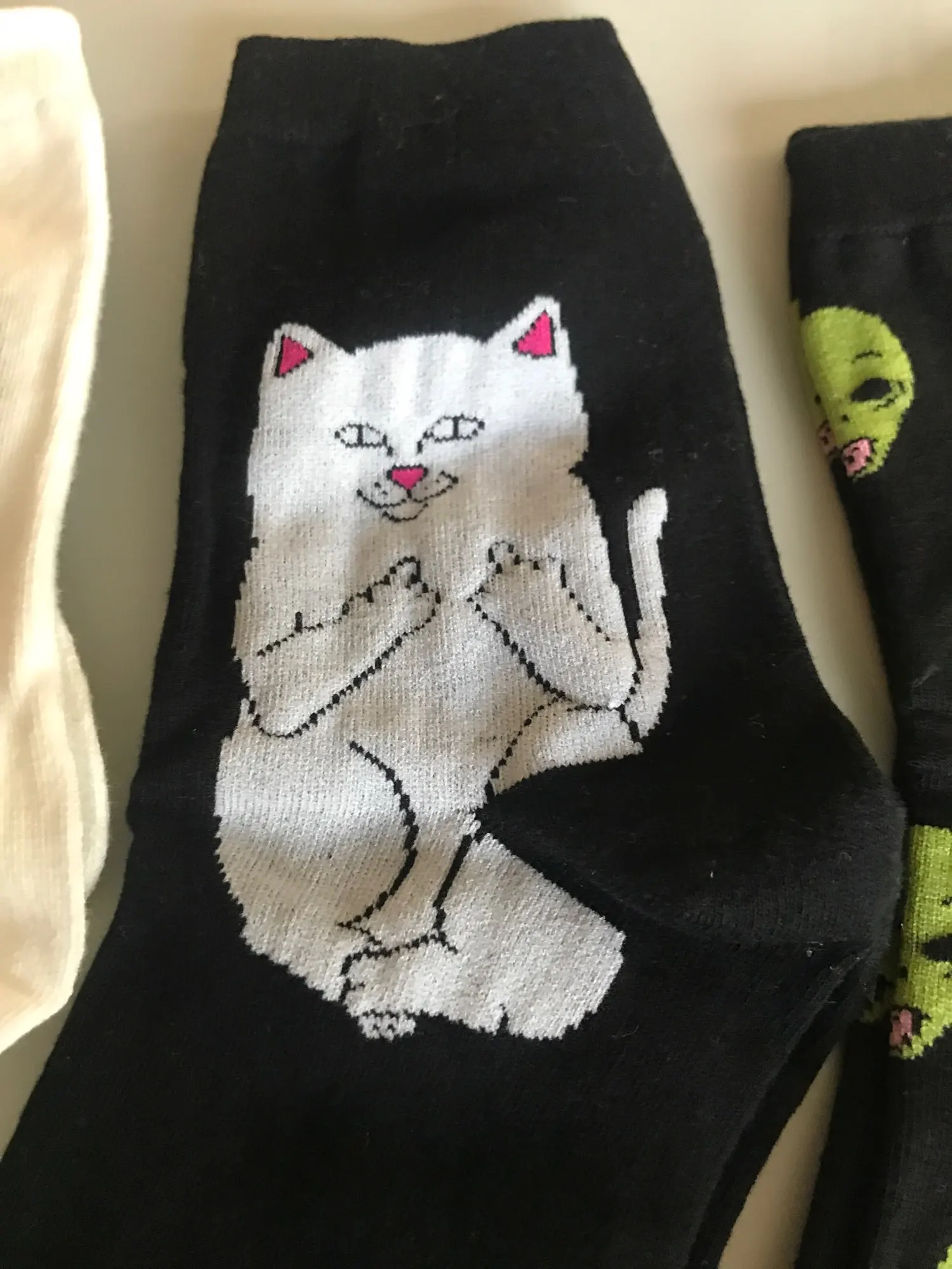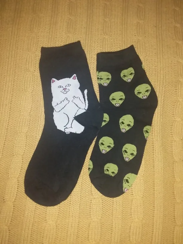 Носки унисекс хлопковые, с рисунком кошки, инопланетянина, 1 пара
