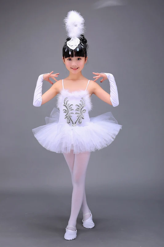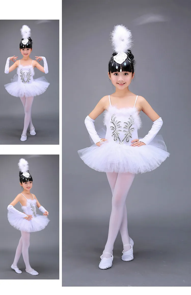 Белое балетное танцевальное платье для девочек, детское праздничное платье для бальных танцев, детское платье-пачка для представлений и джазовых выступлений, одежда