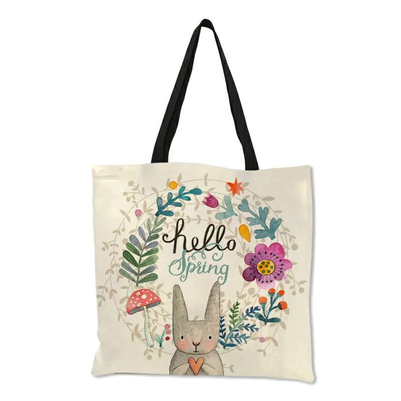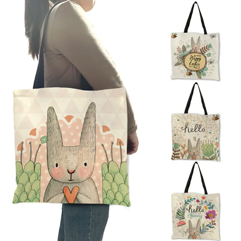 Счастливая Пасха, милая Эко сумка для покупок с мультяшным Кроликом...