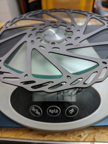 Выглядит отлично и определенно толще, чем мой новый диск shimano 160. Еще не протестировали его, но я также получу один для заднего колеса. Отлично выглядит.