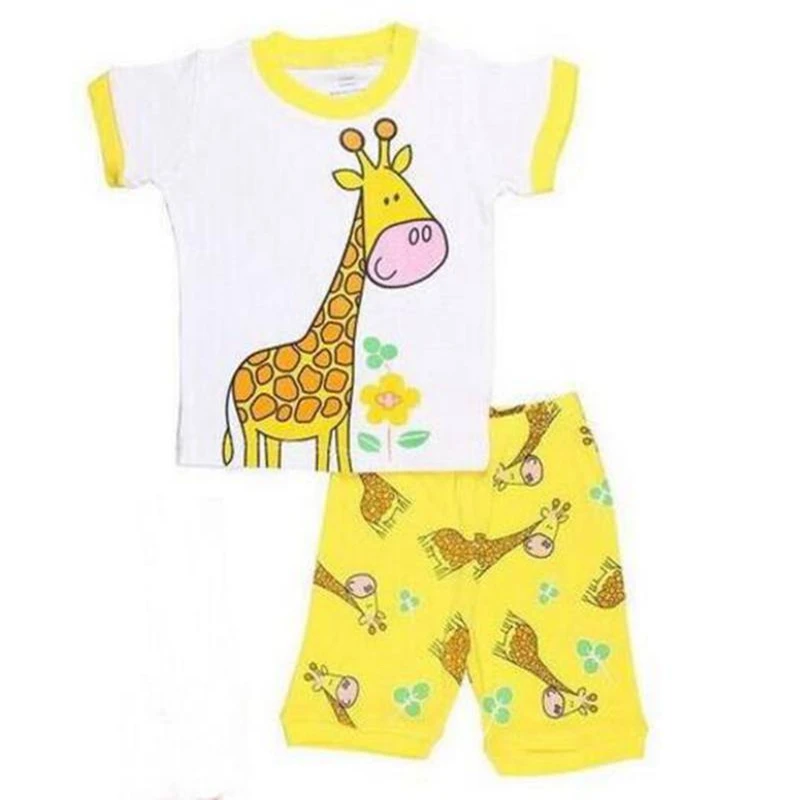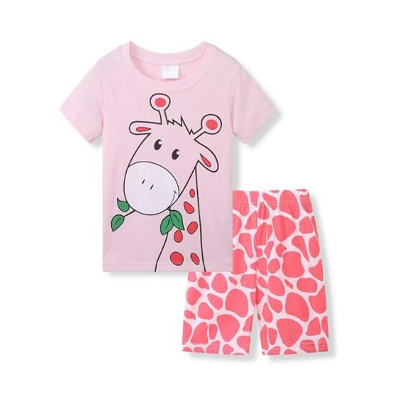 Комплекты одежды из 2 предметов для маленьких девочек с жирафом, летние детские пижамные комплекты, футболка для девочек с леопардовым принтом, короткие штаны, хлопковая блузка, наряды