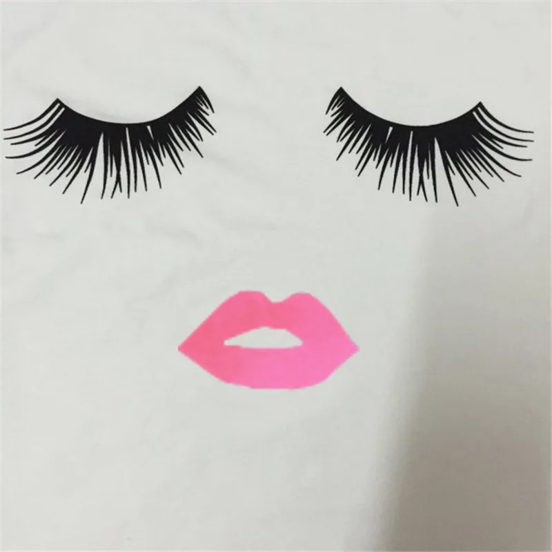 Размера плюс 5XL милые ресницы, с рисунком красных губ Для женщин; Летние футболки в стиле хип из молочного шелка, футболки с короткими рукавами, с круглым вырезом, женская обувь белого и черного цвета, топы