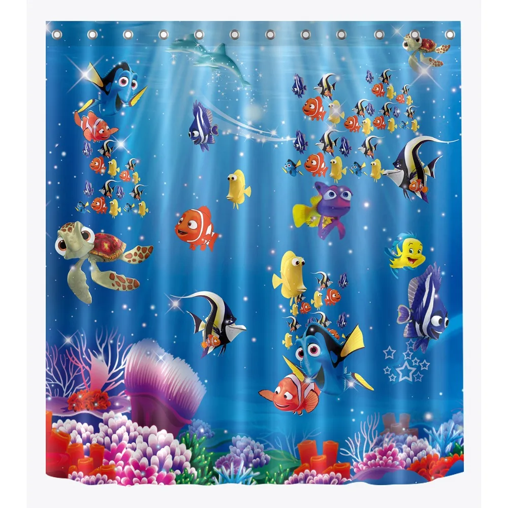 Забавная занавеска для душа с изображением морских рыбок, водостойкая, удлиненная, из полиэстера, для детской ванны