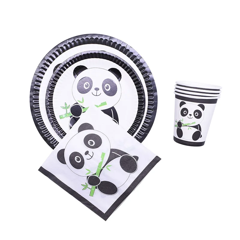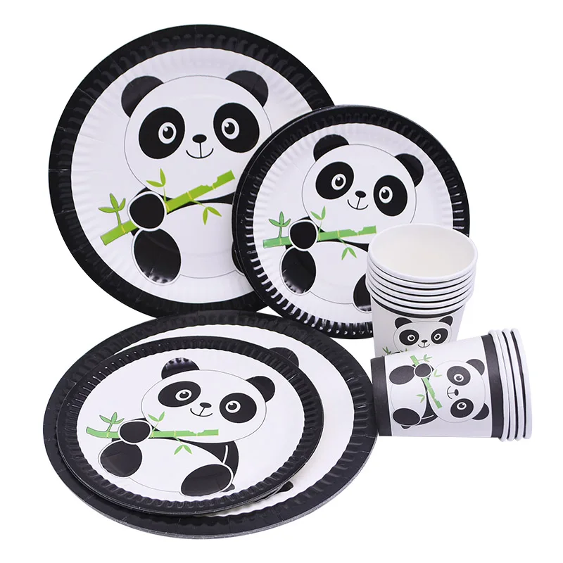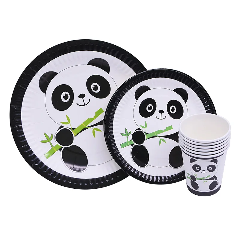 Тема фольга животное воздушный шар с пандой одноразовые тарелки чашки вечерние Посуда Свадьба Ребенок душ Дети День Рождения вечерние украшения поставки