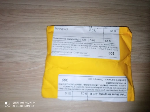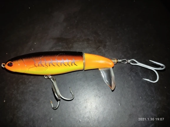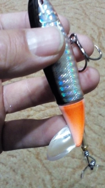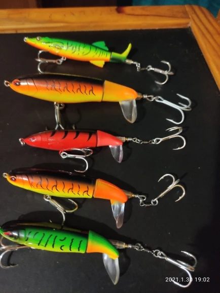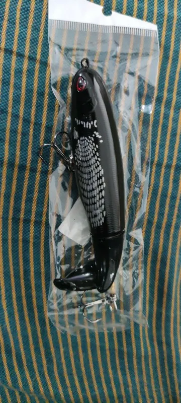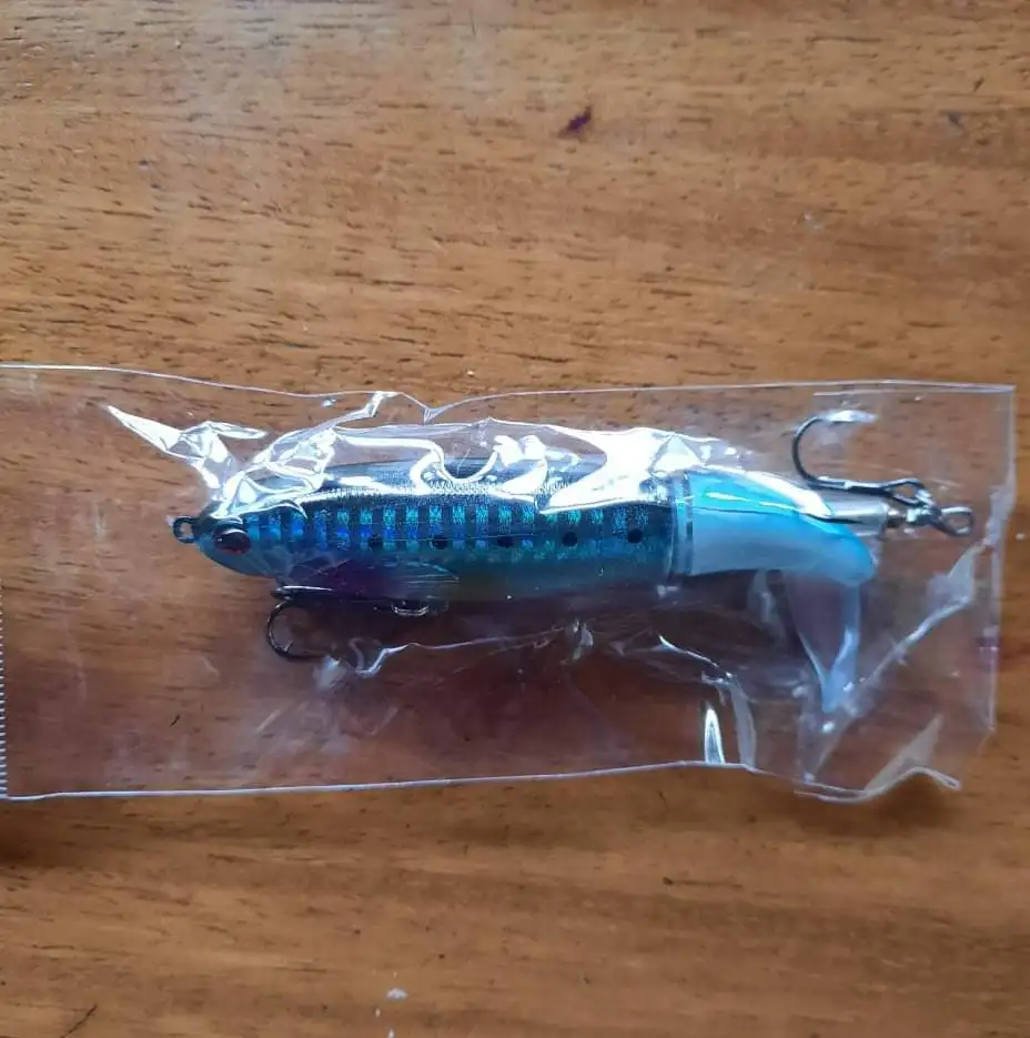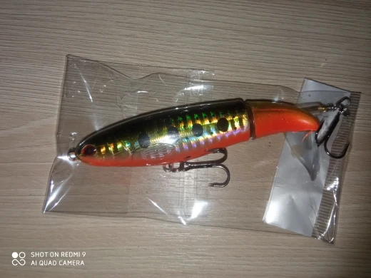 1) Ordered 2020-08-25. Received 2020-09-07. Total time 13 days. Marvelous. 2) Top water fishing lure packed in selling bag with closing strip, inside an airprotected adressed envelope. This put inside a big adressed envelope with fishing articles from other sellers. No damages! 3) Lure as described- and shown at pictures on sellers AliExpress website. Wait 35gr. Propellor functions. Sharp hooks. Colored sprayed tail end after propellor not well sprayed 4) Quality/ price ratio including transportation is very good. Now we have to find out in practice how good this lurebait catches big fish. 5) For this lure and the fast shipment we rate this seller with ☆☆☆☆☆(5) stars
