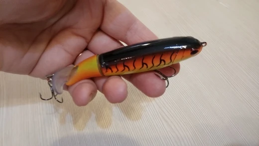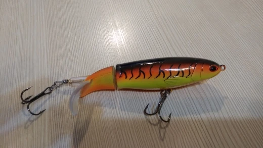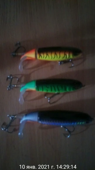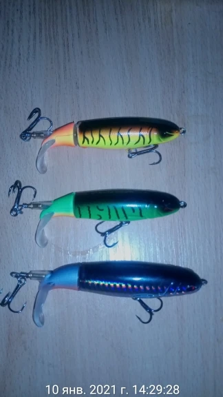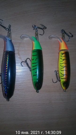 Воблер работает исправно прикольно шлёпает по воде - получается бульканье но не как у Поппера ! Притом что мне он достался за 9 рублей с купоном вообще супер ! так что берите не пожалеете ! СУПЕР БЕРИТЕ!