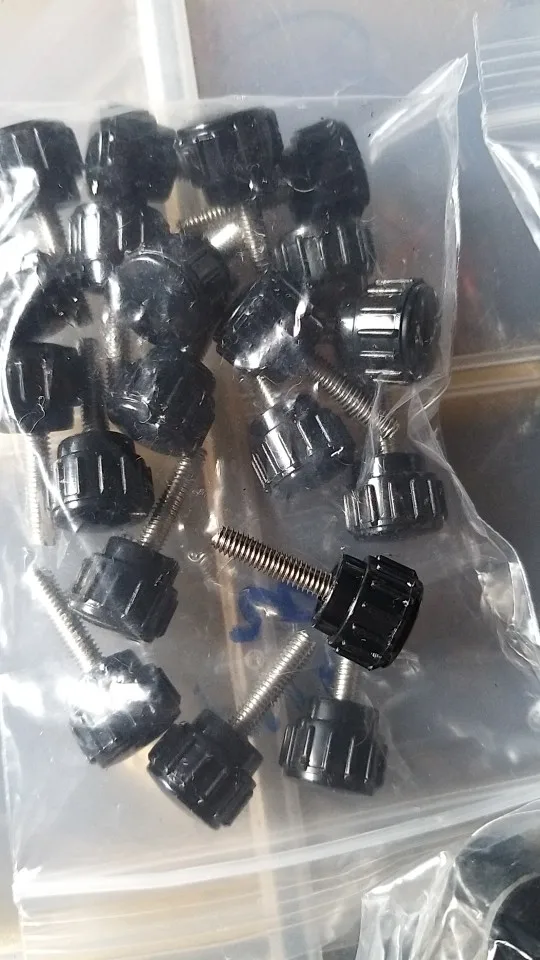 10pcs M3 M4 M5 Black Bakelite Round Head With Stainless Steel Rod Hand Handle Thumb Screw(Head Diameter 15mm)