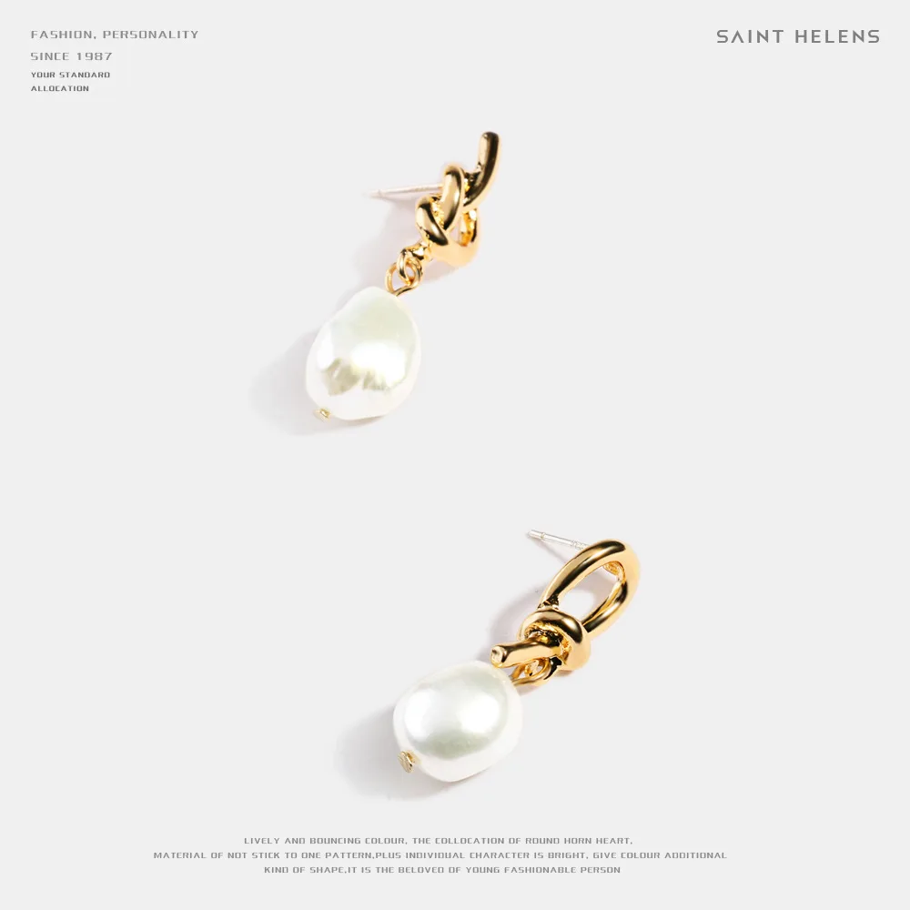 Асимметричные серьги из серебра S925 пробы с бусинами для женщин, серьги в стиле барокко с пресноводным жемчугом, ювелирные изделия