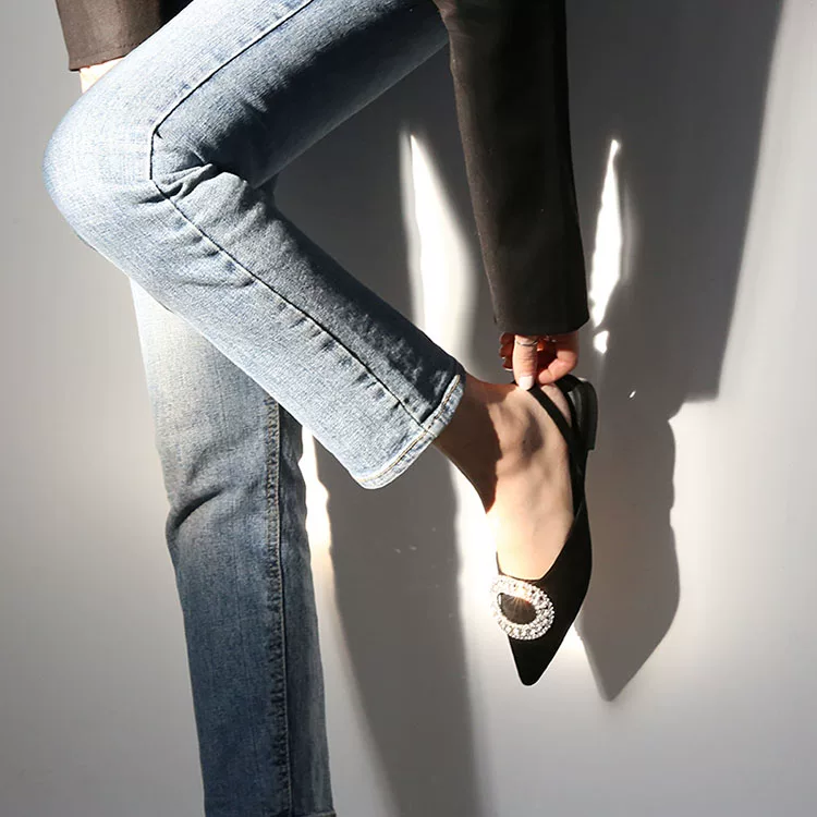 Женские полутапочки с пряжкой; Сезон весна-лето; Сандалии и шлепанцы с острым носком; Женские сандалии на плоской подошве
