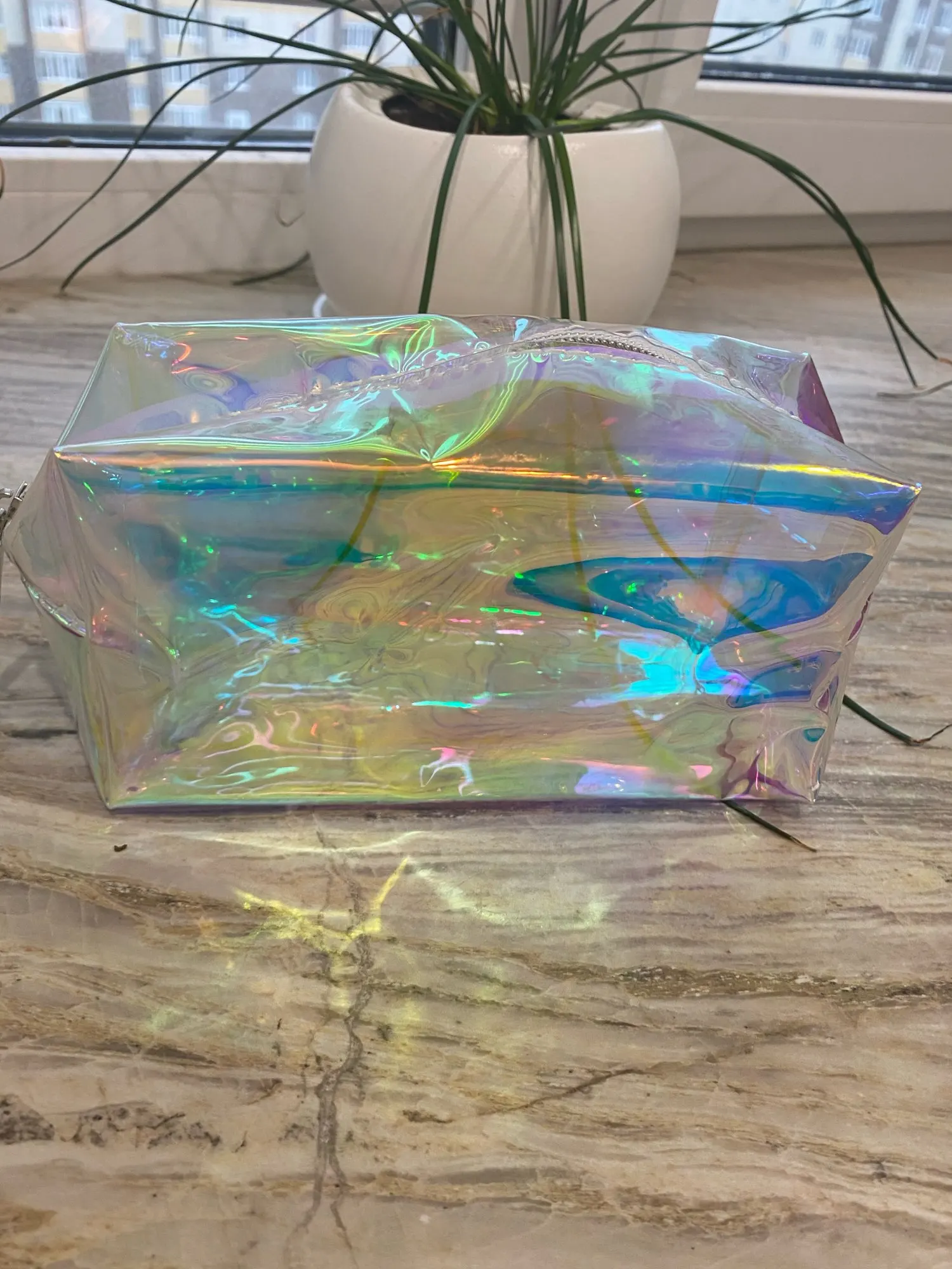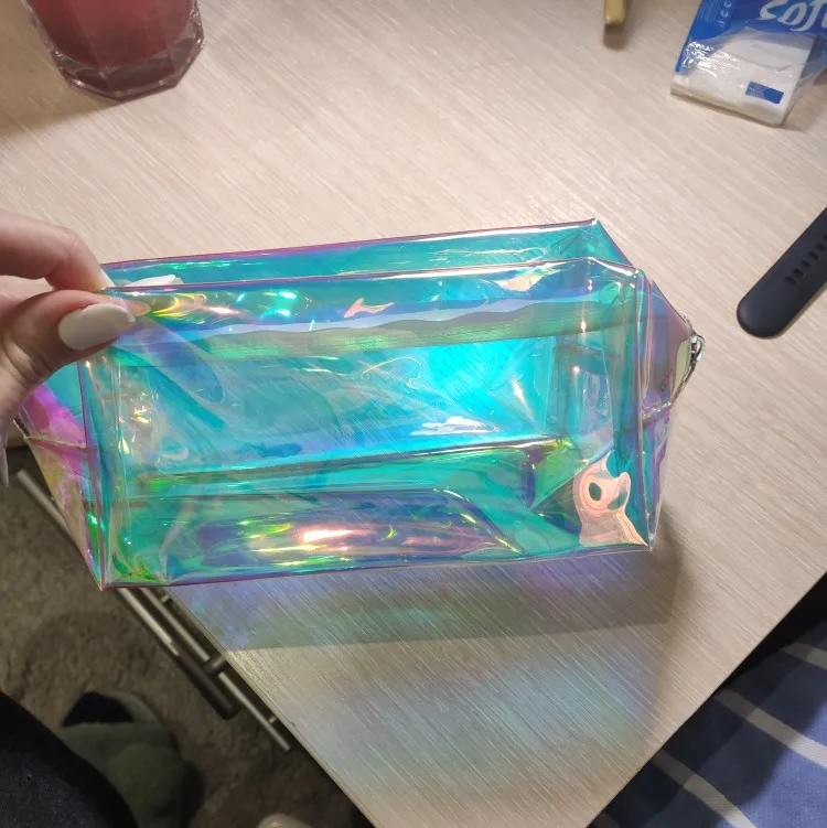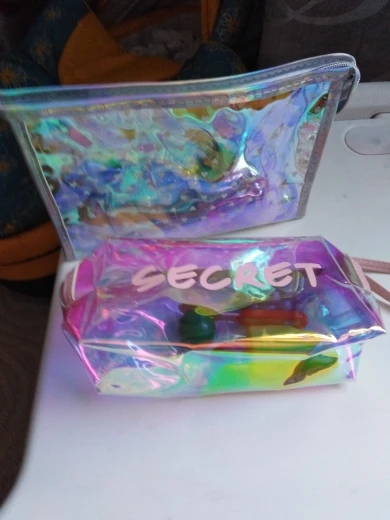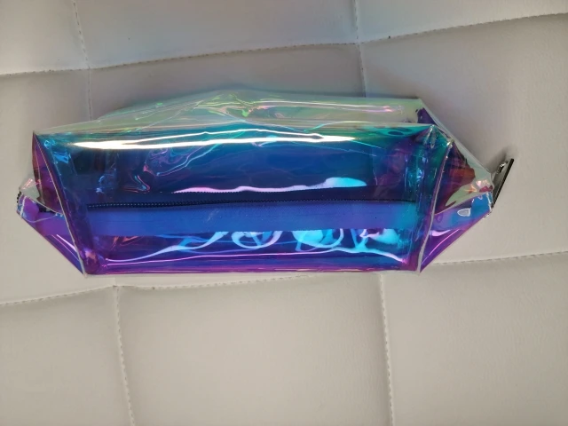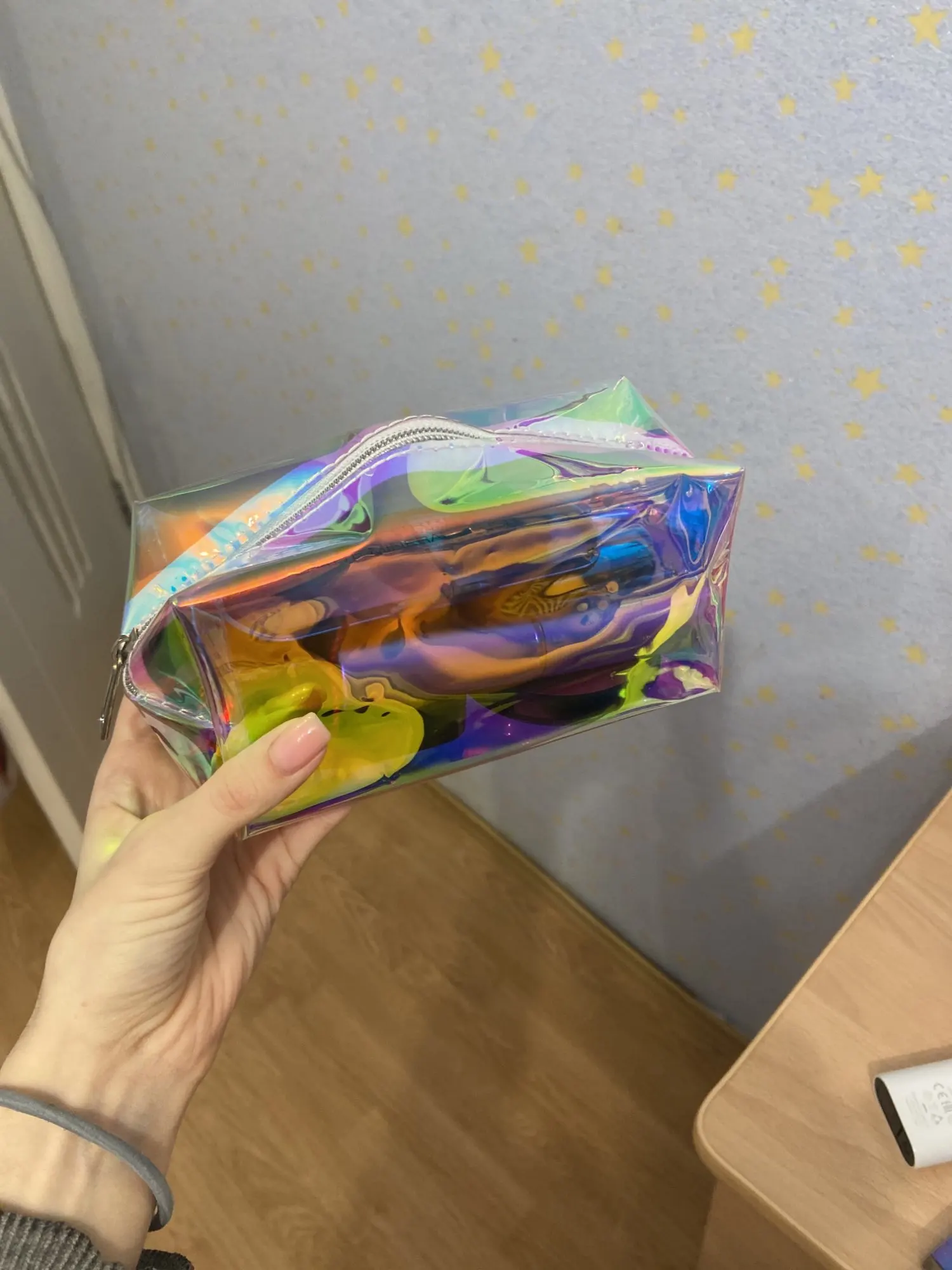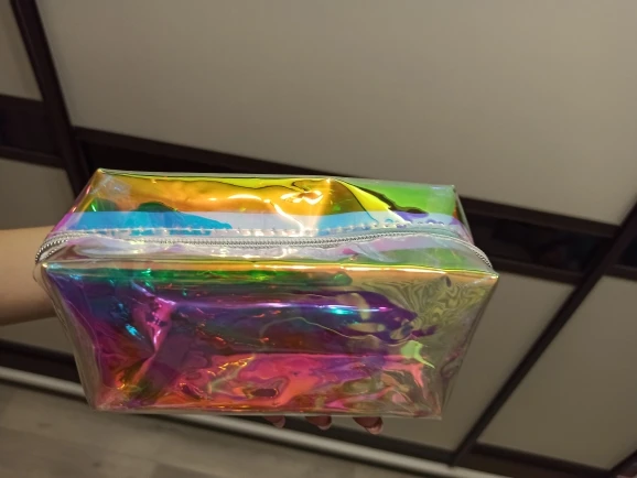 Косметичка очень красивая, прозрачная. Пришла плоская, надеюсь выпрямится. Рекомендую