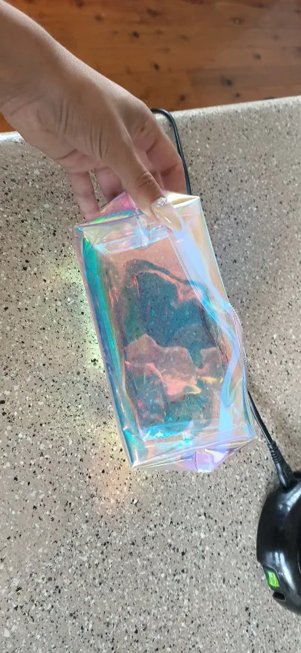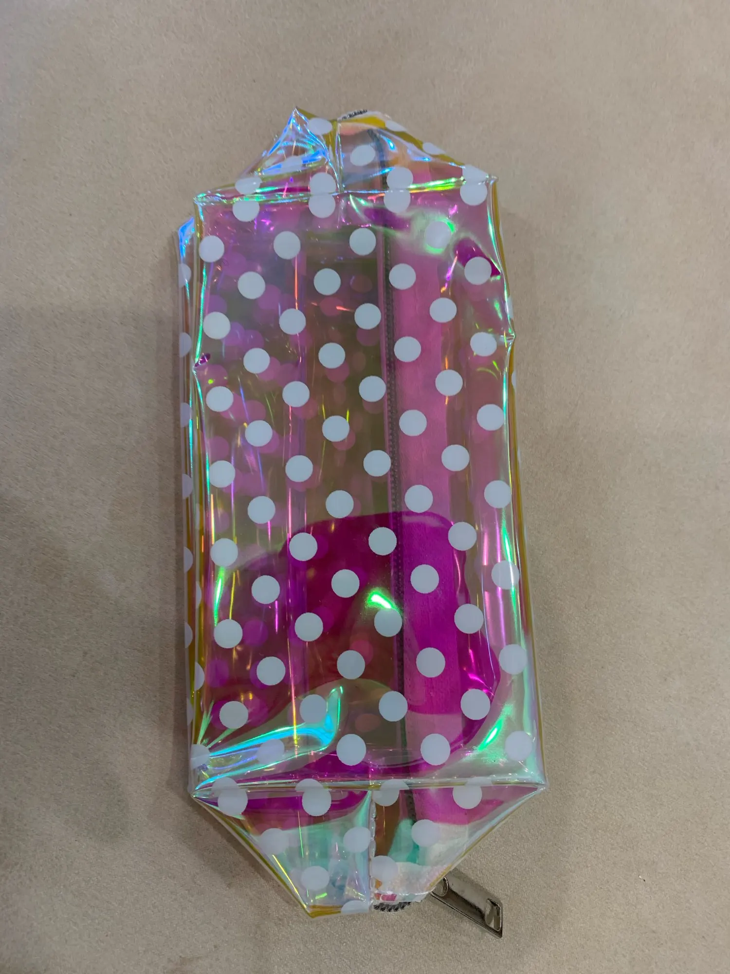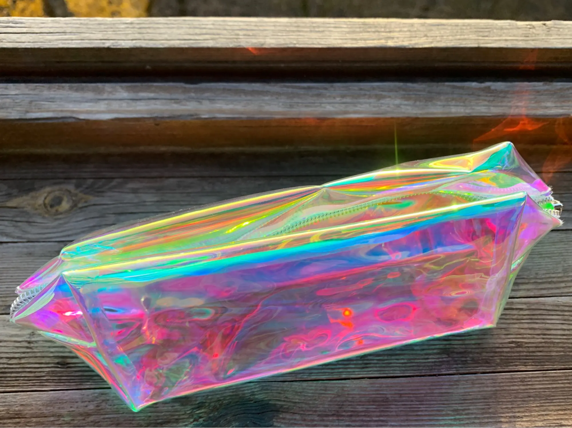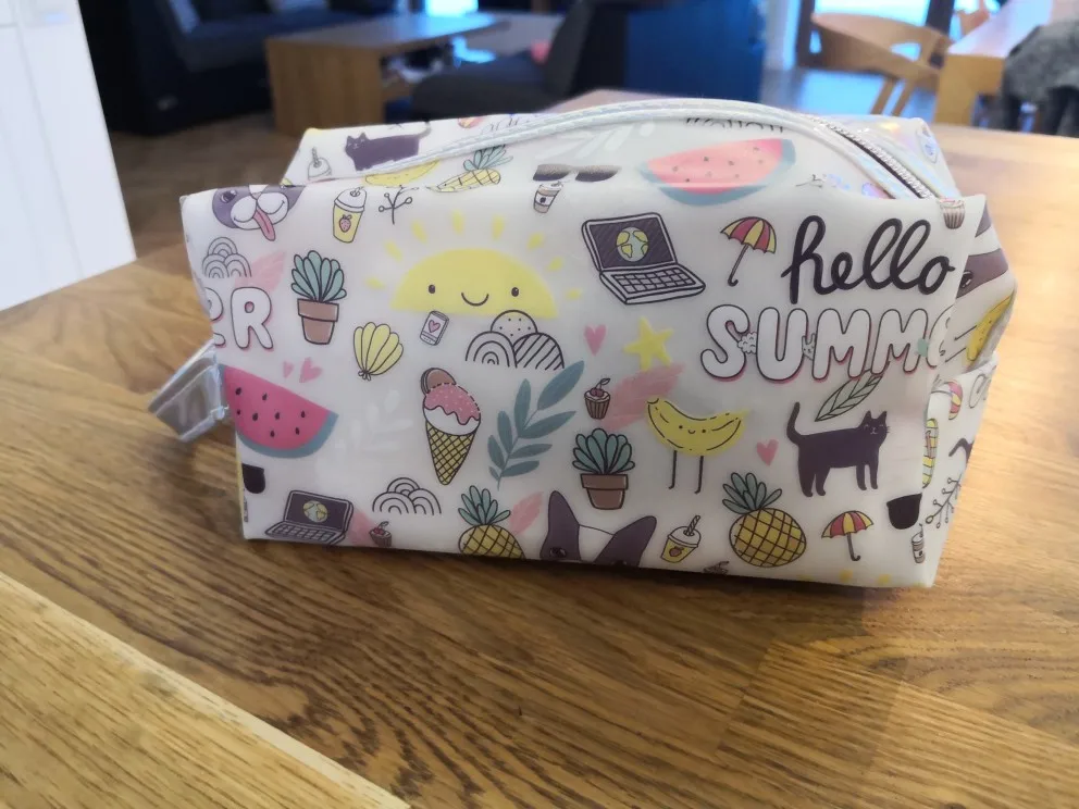 Косметичка очень красивая, прозрачная. Пришла плоская, надеюсь выпрямится. Рекомендую