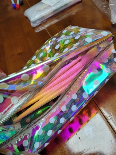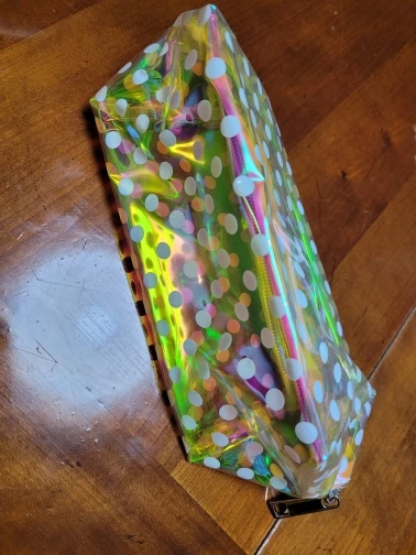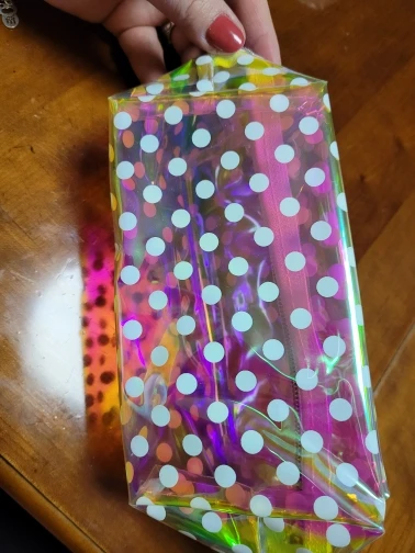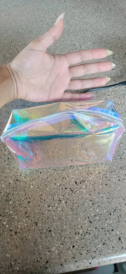 Очень милая косметичка. Очень блестящий. Доставка занимает 7 недель, но за цену и выглядит, что оно того стоит.